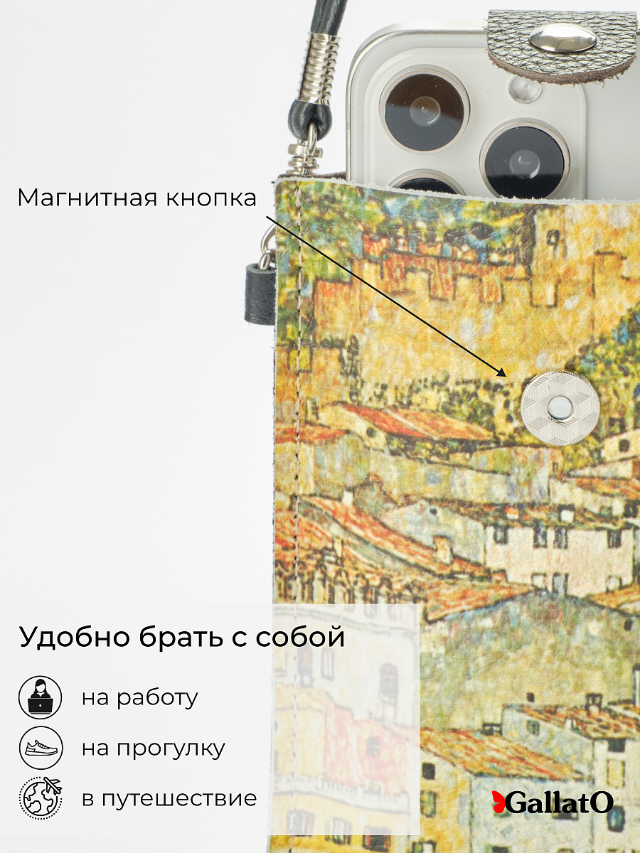 Стильная сумка-чехол для телефонов (для очков и карманом для карточки). Изготовлена из натуральной кожи, фиксируется магнитной кнопкой. Современные разнообразные принты позволяют носить сумку-чехол с любой одеждой. В комплекте прилагается тонкий элегантный плечевой ремешок из эко-кожи, который надежно крепится к чехлу карабинами, длина ремешка 120 см. Чехол подходит для всех телефонов, от маленьких до больших флагманских смартфонов а так же для больших телефонов в чехле.