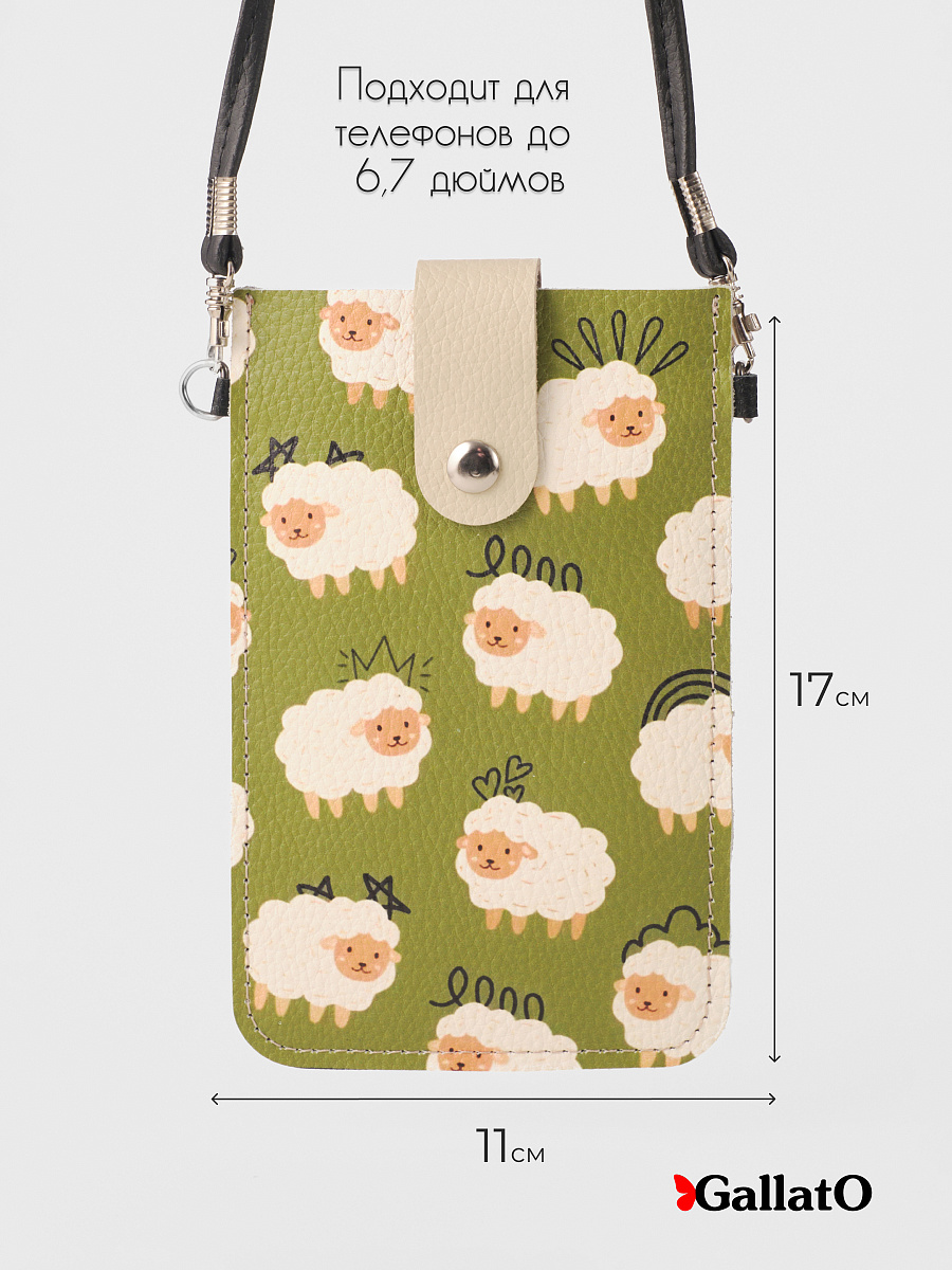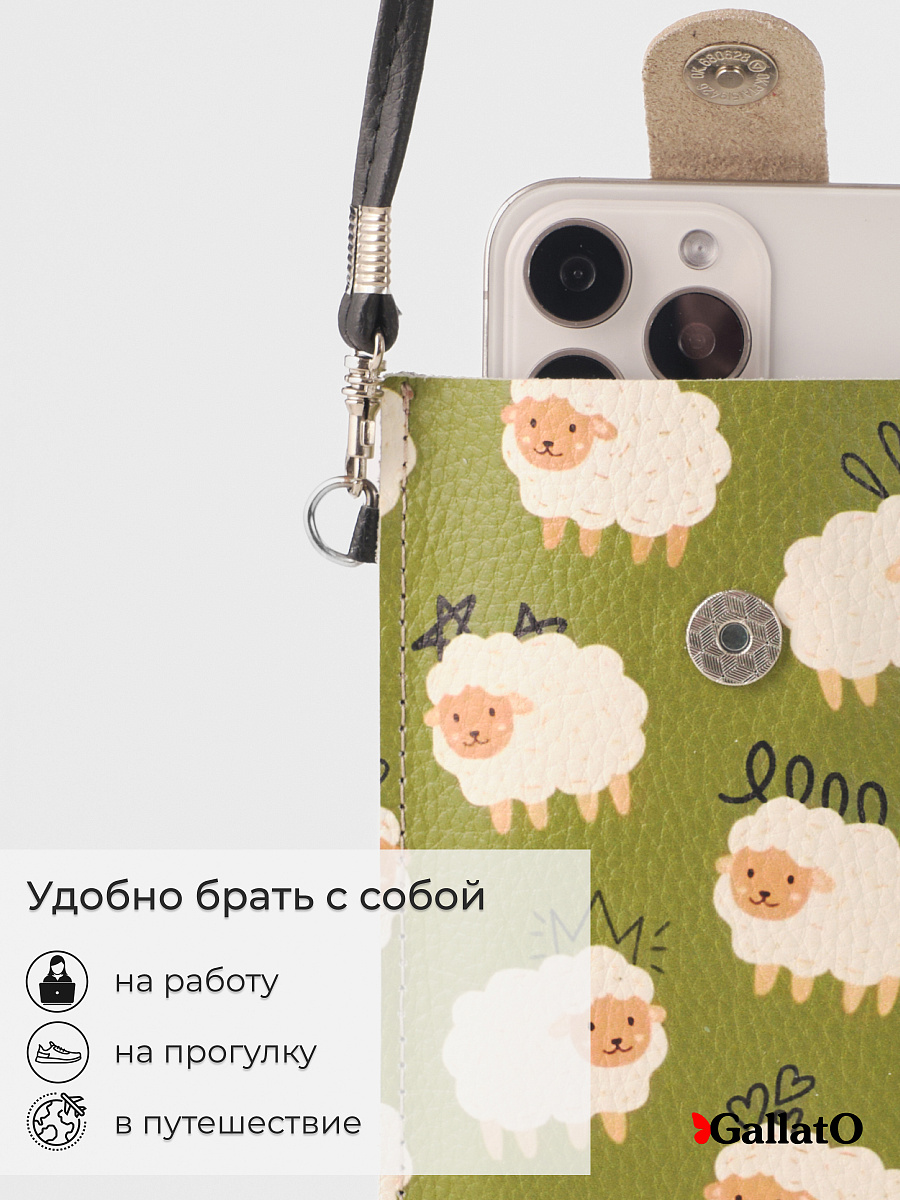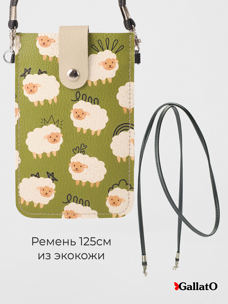 Стильная сумка-чехол для телефонов (для очков и карманом для карточки). Изготовлена из натуральной кожи, фиксируется магнитной кнопкой. Современные разнообразные принты позволяют носить сумку-чехол с любой одеждой. В комплекте прилагается тонкий элегантный плечевой ремешок из эко-кожи, который надежно крепится к чехлу карабинами, длина ремешка 120 см. Чехол подходит для всех телефонов, от маленьких до больших флагманских смартфонов а так же для больших телефонов в чехле.
