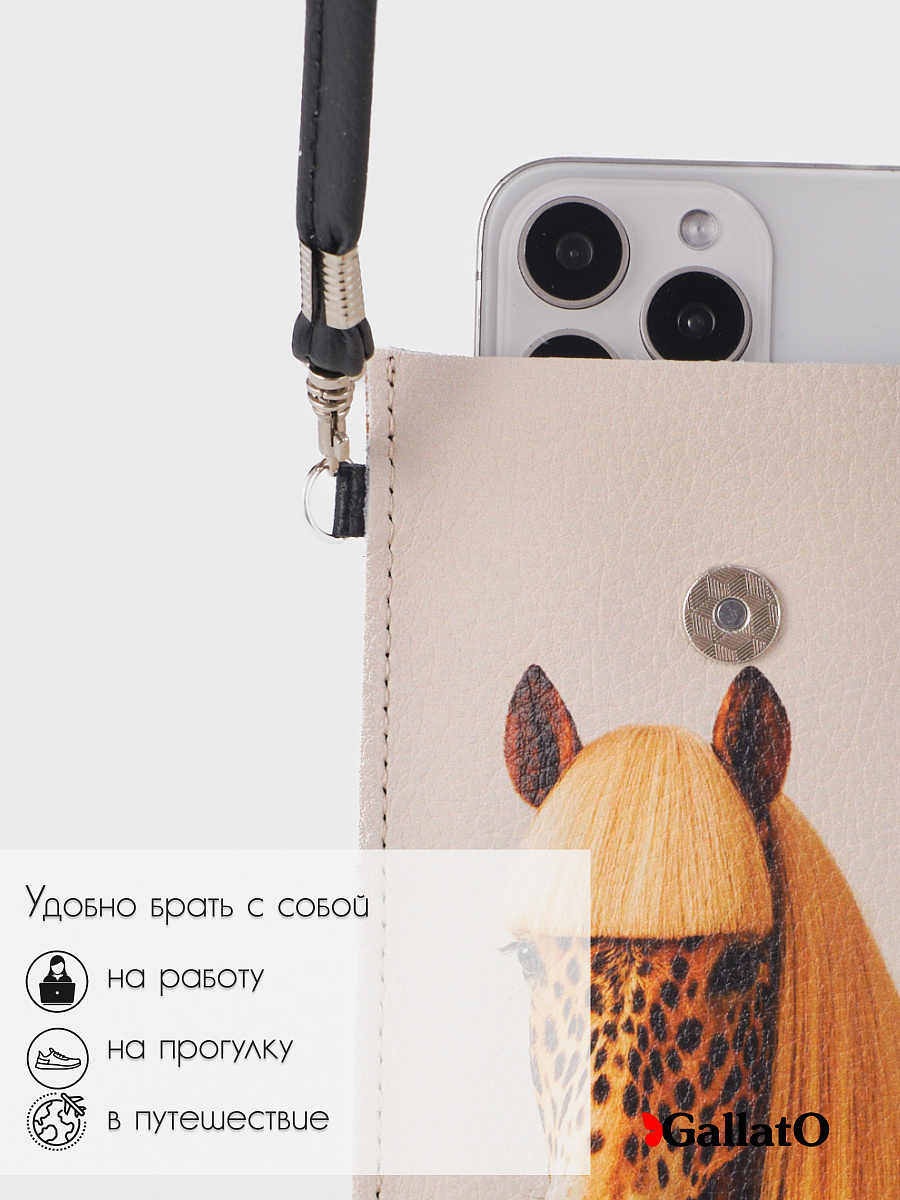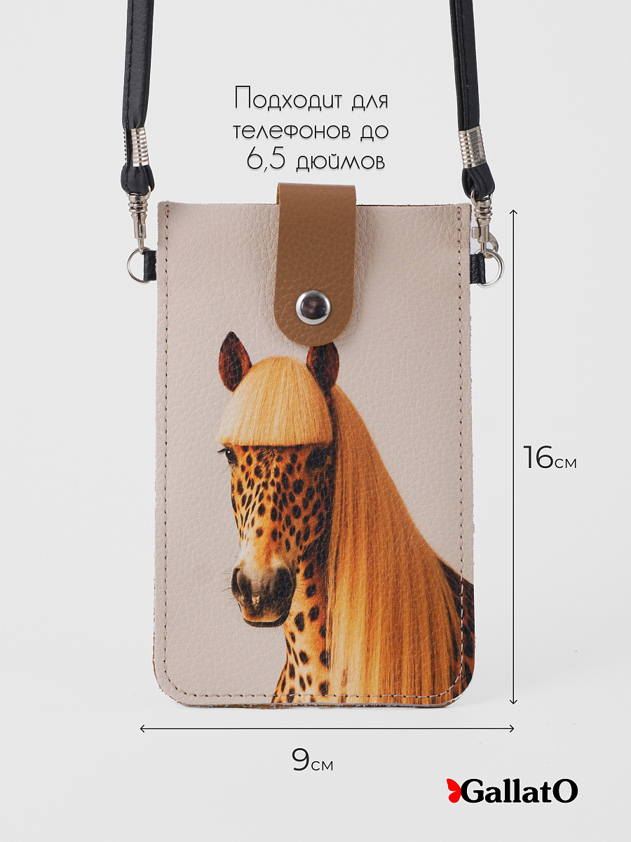 Стильная сумка-чехол для телефонов (для очков и карманом для карточки). Изготовлена из натуральной кожи, фиксируется магнитной кнопкой. Современные разнообразные принты позволяют носить сумку-чехол с любой одеждой. В комплекте прилагается тонкий элегантный плечевой ремешок из эко-кожи, который надежно крепится к чехлу карабинами, длина ремешка 120 см. Чехол подходит для всех телефонов, от маленьких до больших флагманских смартфонов а так же для больших телефонов в чехле.