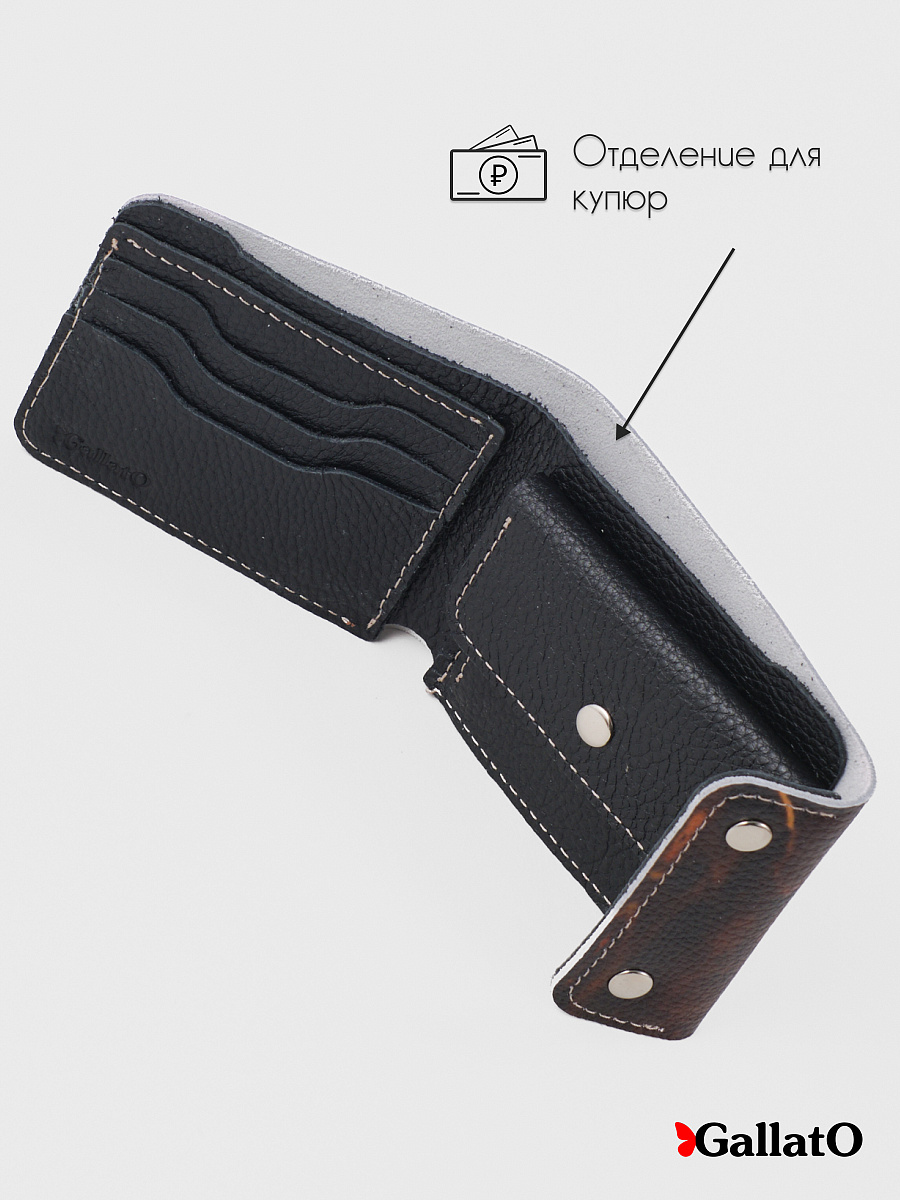 Кошелек - портмоне, картхолдер, бумажник выполнен из натуральной кожи. Удобен в использовании, помещается в карман джинс. Изделие содержит 3 отделения для карт, 1 потайное отделение; Отделение для купюр и кармашек для монет. Размер 11,5 см х 8,5 см, в развернутом 27 см х 8,5 см.
