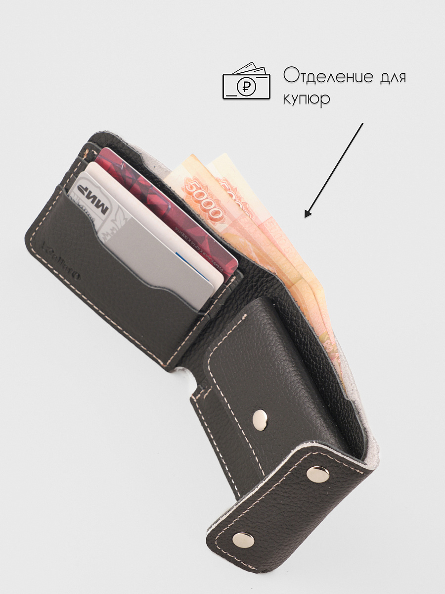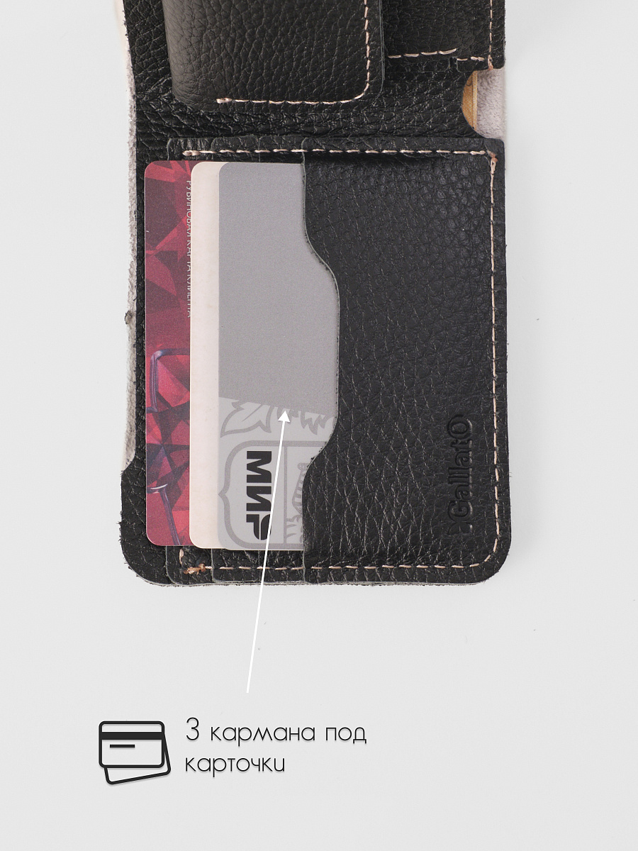 Кошелек - портмоне, картхолдер, бумажник выполнен из натуральной кожи. Удобен в использовании, помещается в карман джинс. Изделие содержит 3 отделения для карт, 1 потайное отделение; Отделение для купюр и кармашек для монет. Размер 11,5 см х 8,5 см, в развернутом 27 см х 8,5 см.