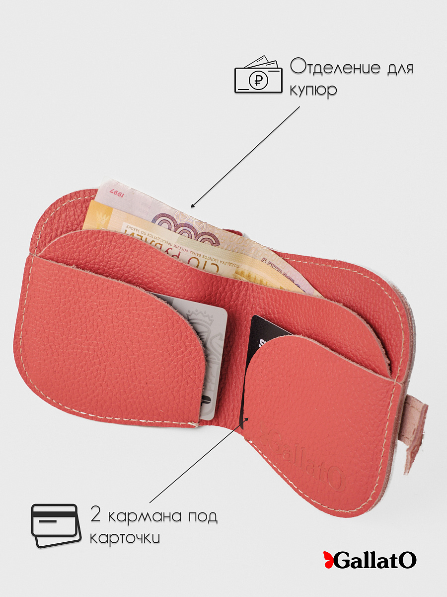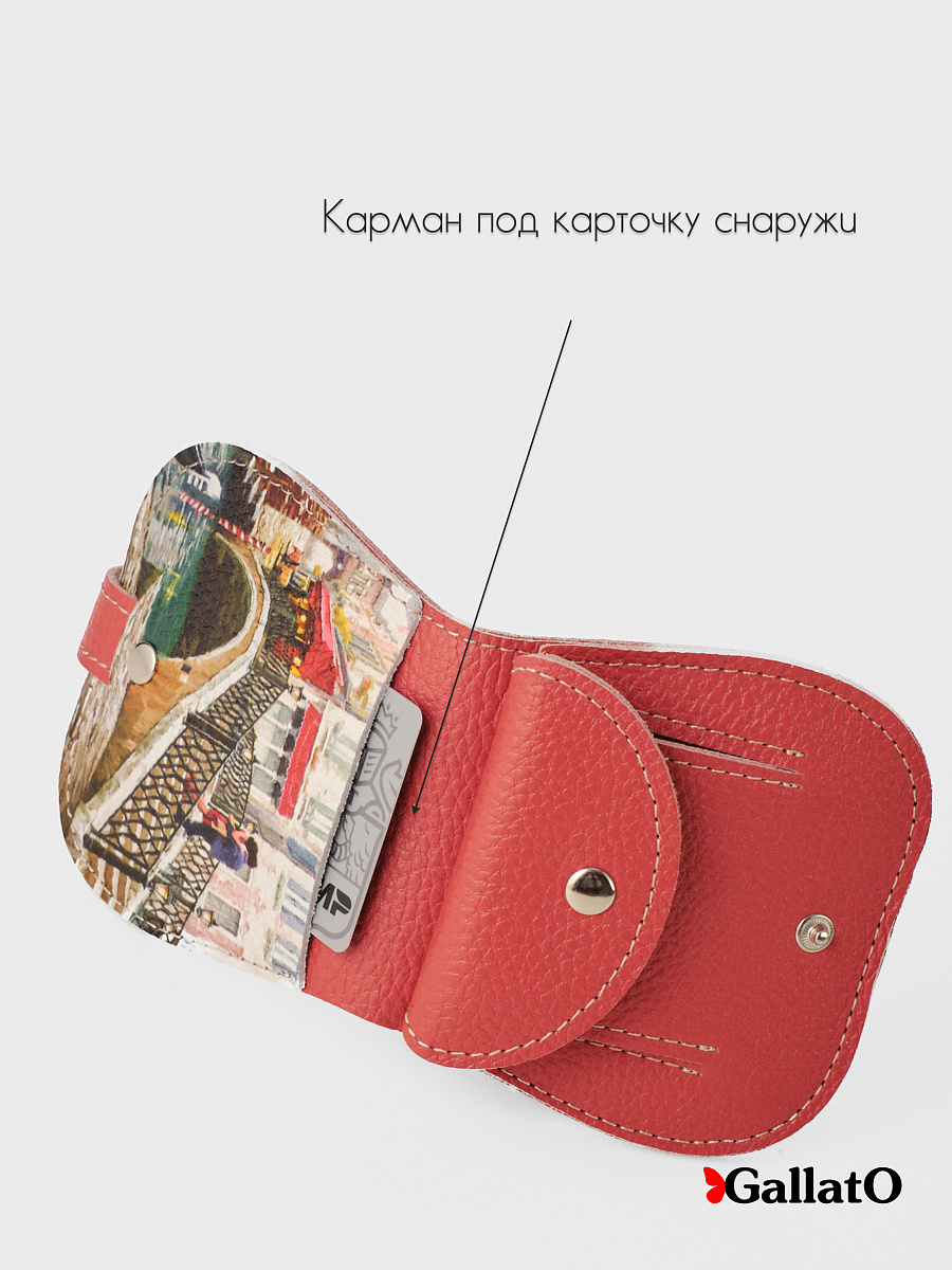 Кошелек - портмоне, картхолдер, бумажник выполнен из натуральной кожи. Удобен в использовании, помещается в карман джинс. Изделие содержит 2 отделения для карт, 1 отделение на кнопке под мелочь; Отделение для купюр и кармашек для монет. Размер 10 см х 10 см.