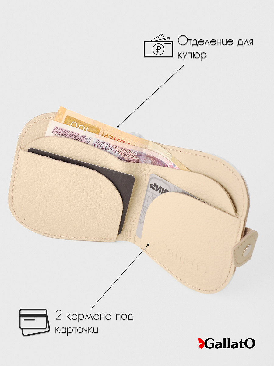Кошелек - портмоне, картхолдер, бумажник выполнен из натуральной кожи. Удобен в использовании, помещается в карман джинс. Изделие содержит 2 отделения для карт, 1 отделение на кнопке под мелочь; Отделение для купюр и кармашек для монет. Размер 10 см х 10 см.