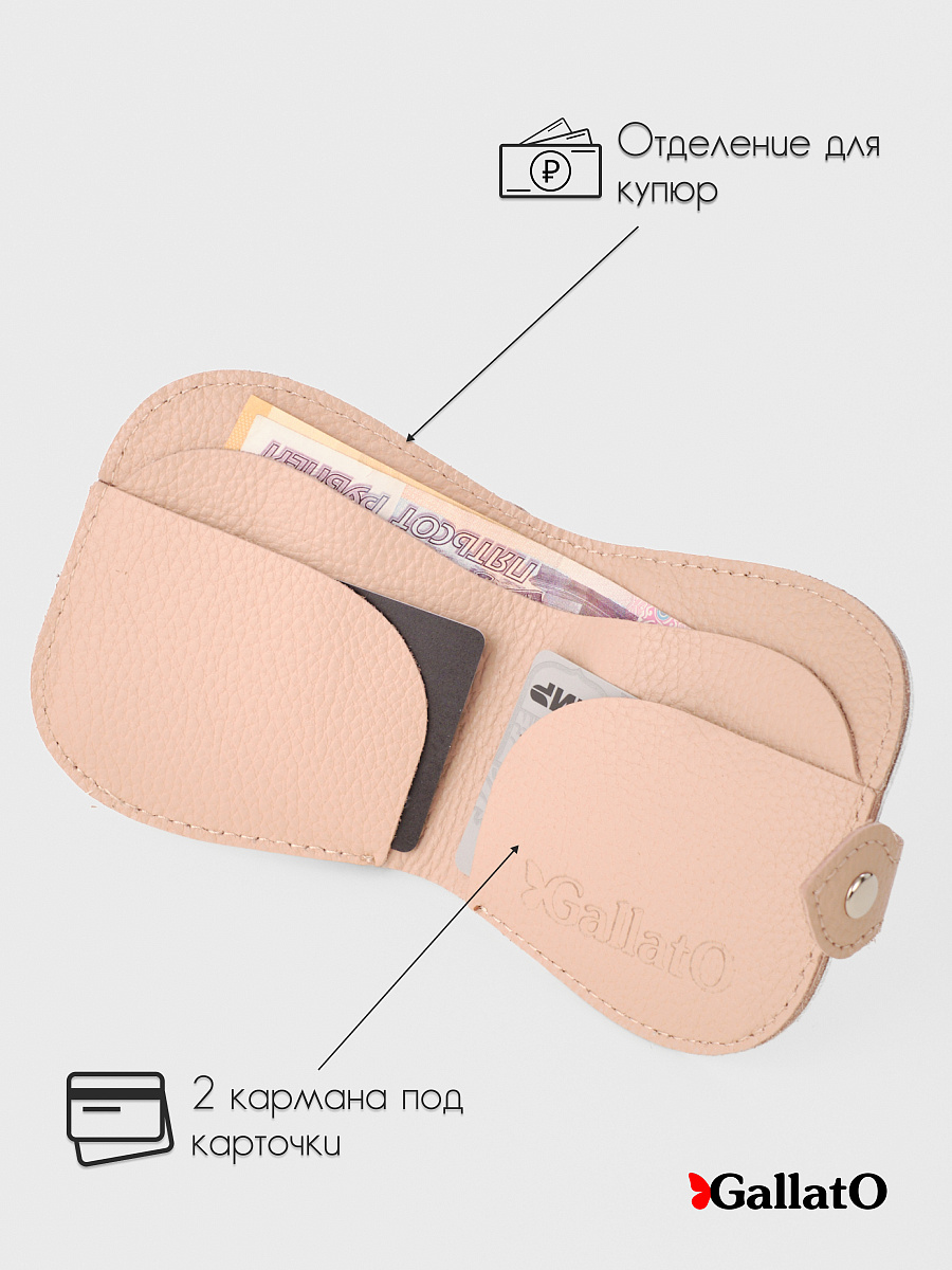 Кошелек - портмоне, картхолдер, бумажник выполнен из натуральной кожи. Удобен в использовании, помещается в карман джинс. Изделие содержит 2 отделения для карт, 1 отделение на кнопке под мелочь; Отделение для купюр и кармашек для монет. Размер 10 см х 10 см.