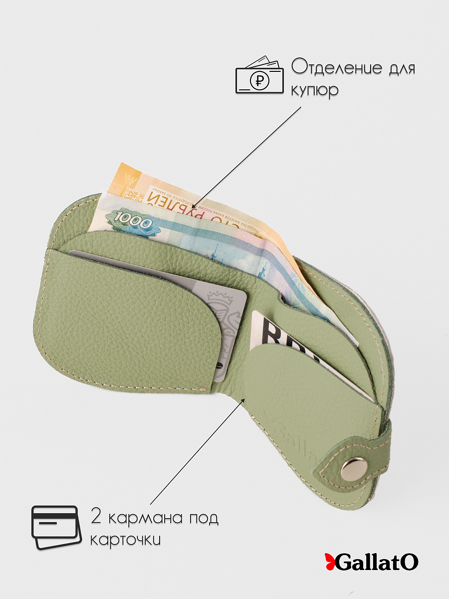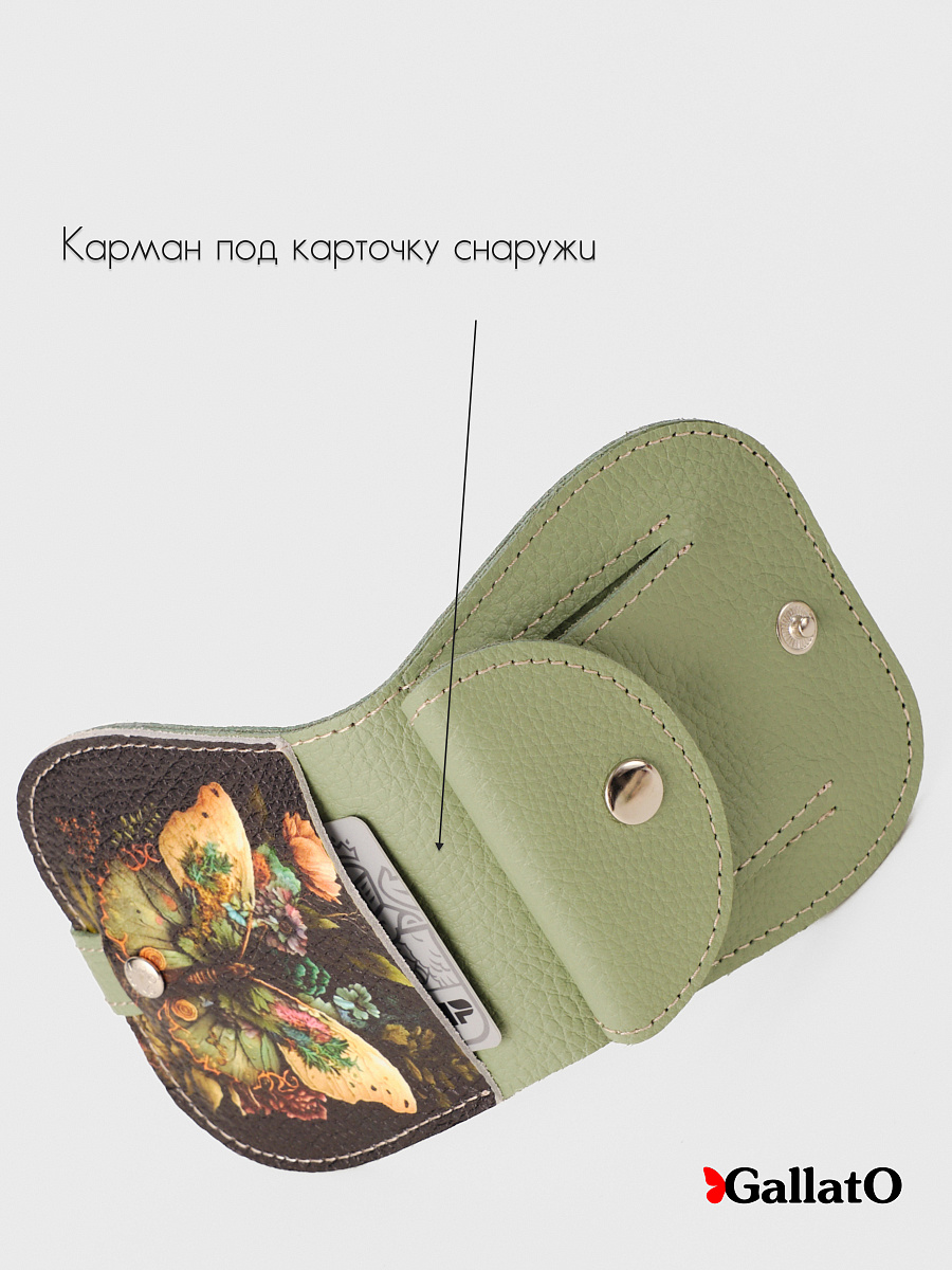 Кошелек - портмоне, картхолдер, бумажник выполнен из натуральной кожи. Удобен в использовании, помещается в карман джинс. Изделие содержит 2 отделения для карт, 1 отделение на кнопке под мелочь; Отделение для купюр и кармашек для монет. Размер 10 см х 10 см.