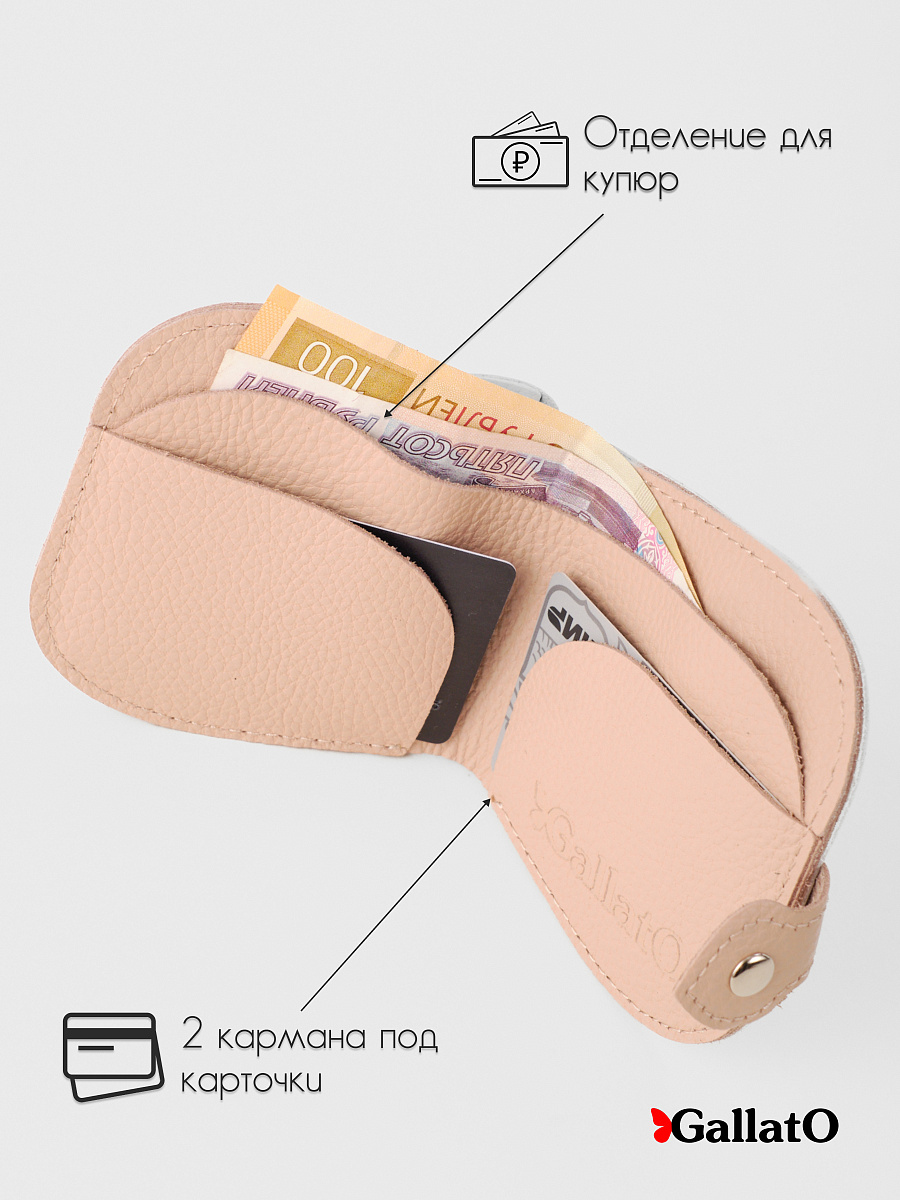 Кошелек - портмоне, картхолдер, бумажник выполнен из натуральной кожи. Удобен в использовании, помещается в карман джинс. Изделие содержит 2 отделения для карт, 1 отделение на кнопке под мелочь; Отделение для купюр и кармашек для монет. Размер 10 см х 10 см.