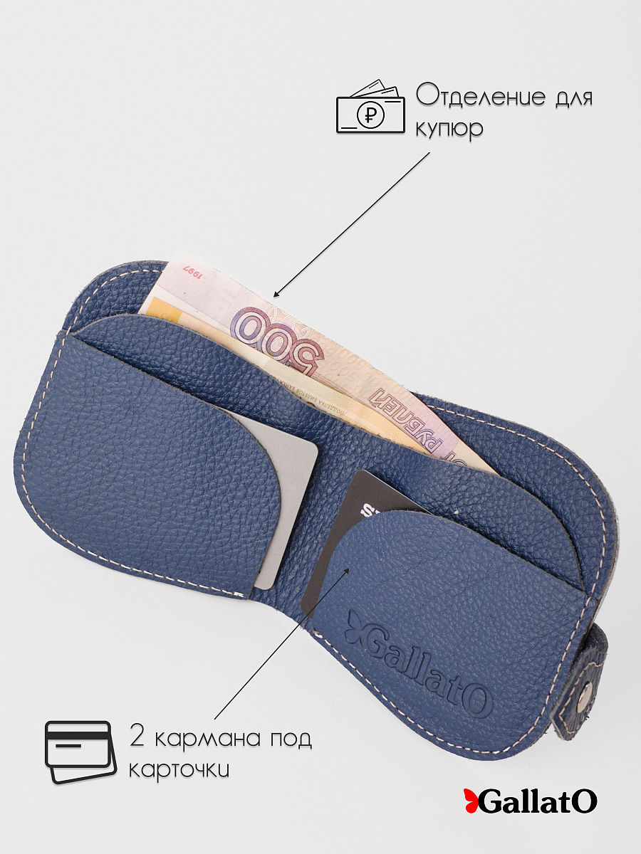 Кошелек - портмоне, картхолдер, бумажник выполнен из натуральной кожи. Удобен в использовании, помещается в карман джинс. Изделие содержит 2 отделения для карт, 1 отделение на кнопке под мелочь; Отделение для купюр и кармашек для монет. Размер 10 см х 10 см.