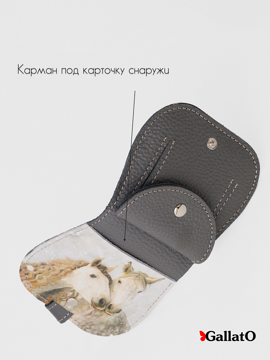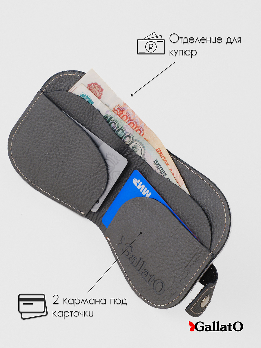 Кошелек - портмоне, картхолдер, бумажник выполнен из натуральной кожи. Удобен в использовании, помещается в карман джинс. Изделие содержит 2 отделения для карт, 1 отделение на кнопке под мелочь; Отделение для купюр и кармашек для монет. Размер 10 см х 10 см.