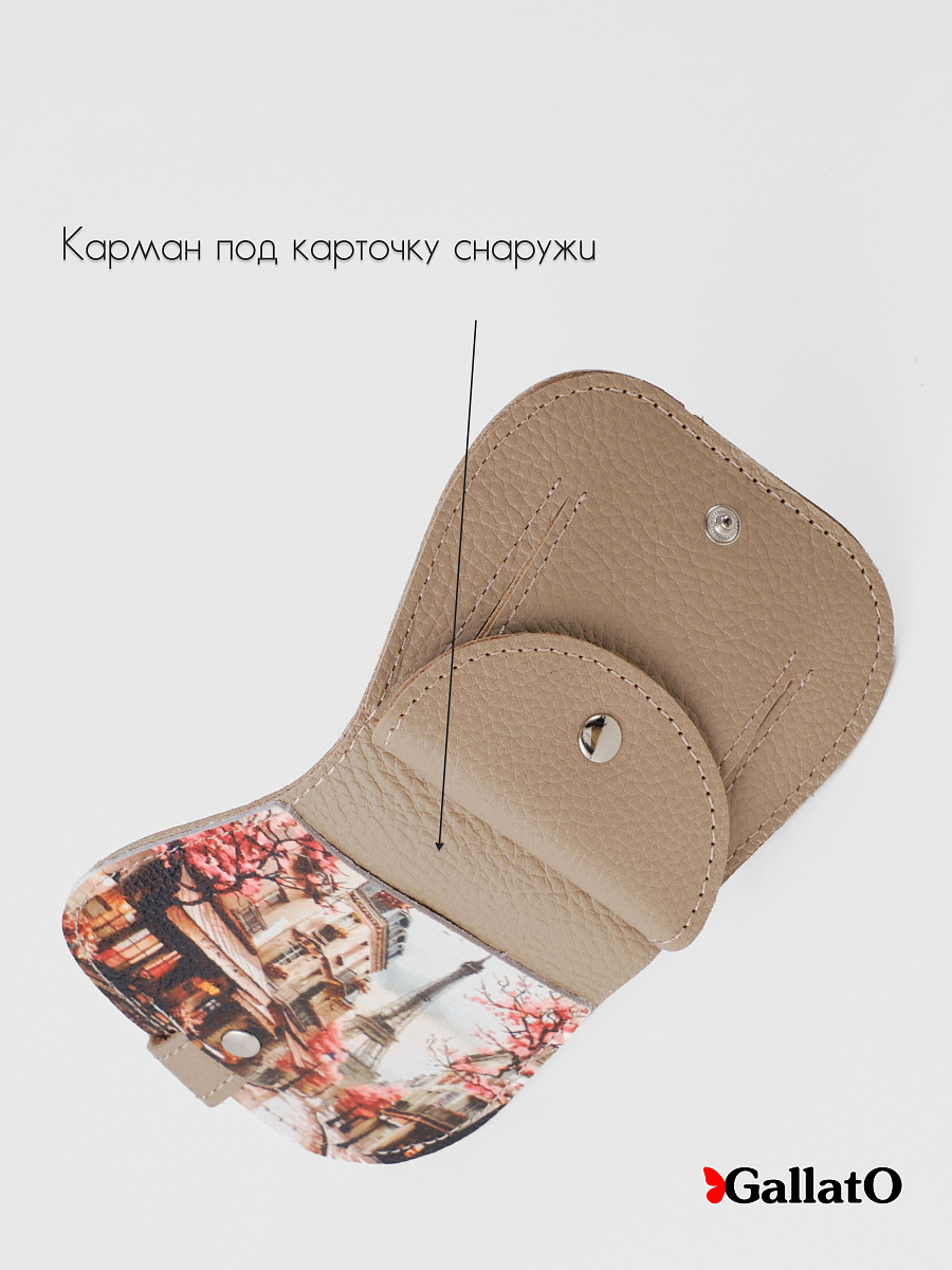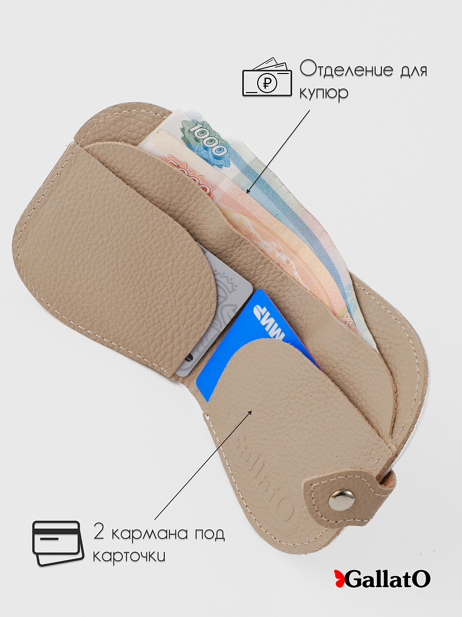 Кошелек - портмоне, картхолдер, бумажник выполнен из натуральной кожи. Удобен в использовании, помещается в карман джинс. Изделие содержит 2 отделения для карт, 1 отделение на кнопке под мелочь; Отделение для купюр и кармашек для монет. Размер 10 см х 10 см.