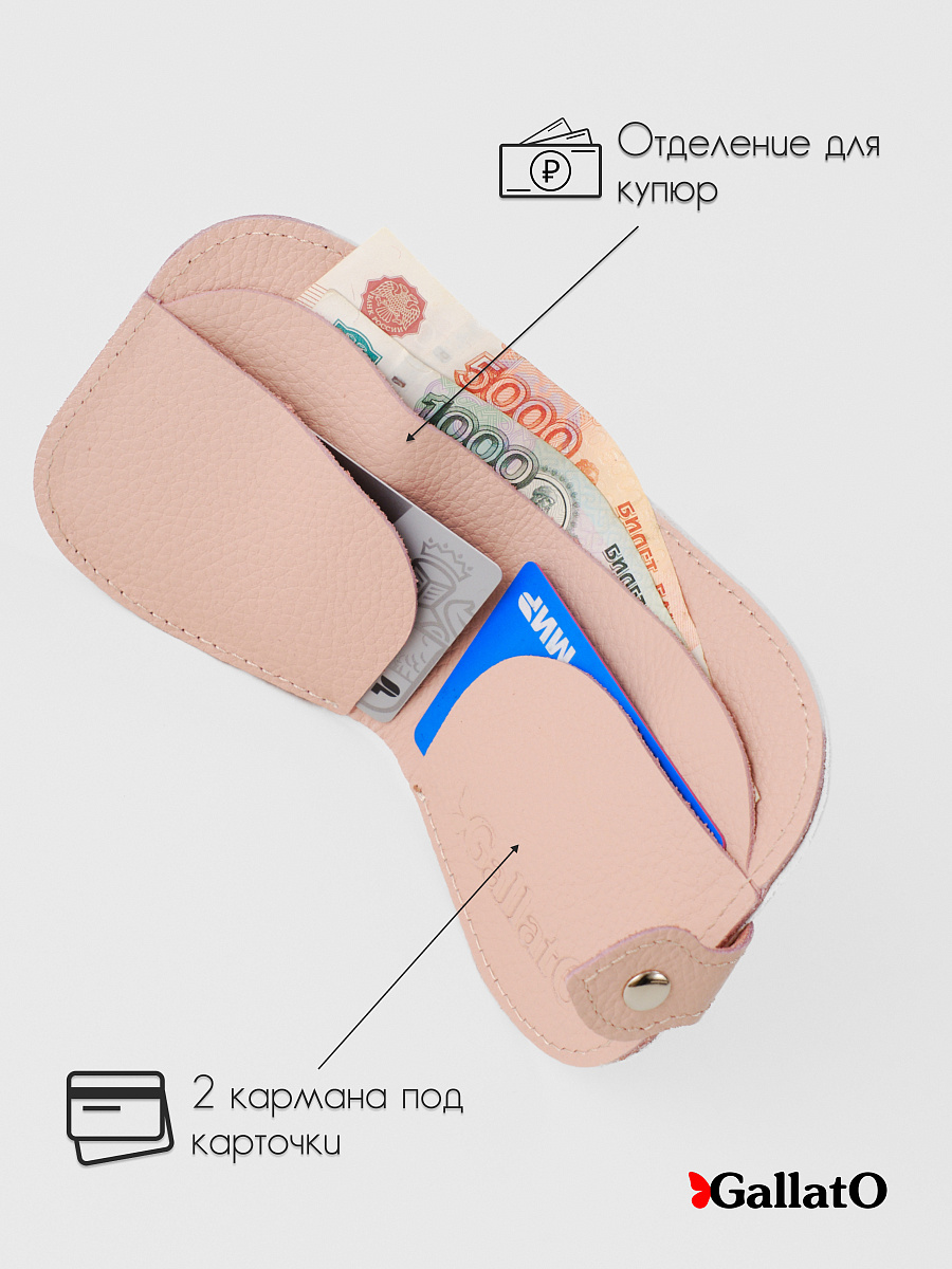 Кошелек - портмоне, картхолдер, бумажник выполнен из натуральной кожи. Удобен в использовании, помещается в карман джинс. Изделие содержит 2 отделения для карт, 1 отделение на кнопке под мелочь; Отделение для купюр и кармашек для монет. Размер 10 см х 10 см.