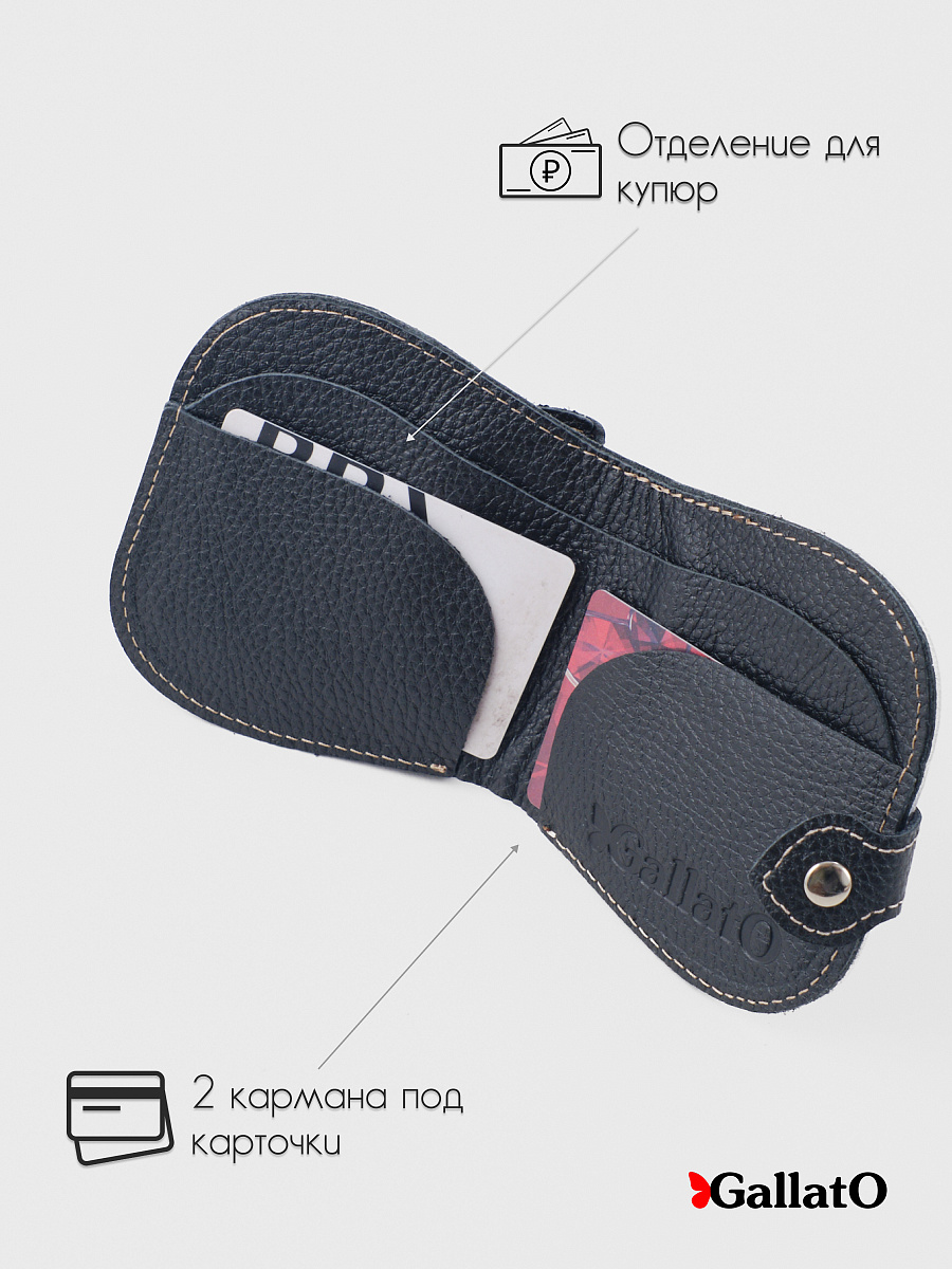 Кошелек - портмоне, картхолдер, бумажник выполнен из натуральной кожи. Удобен в использовании, помещается в карман джинс. Изделие содержит 2 отделения для карт, 1 отделение на кнопке под мелочь; Отделение для купюр и кармашек для монет. Размер 10 см х 10 см.