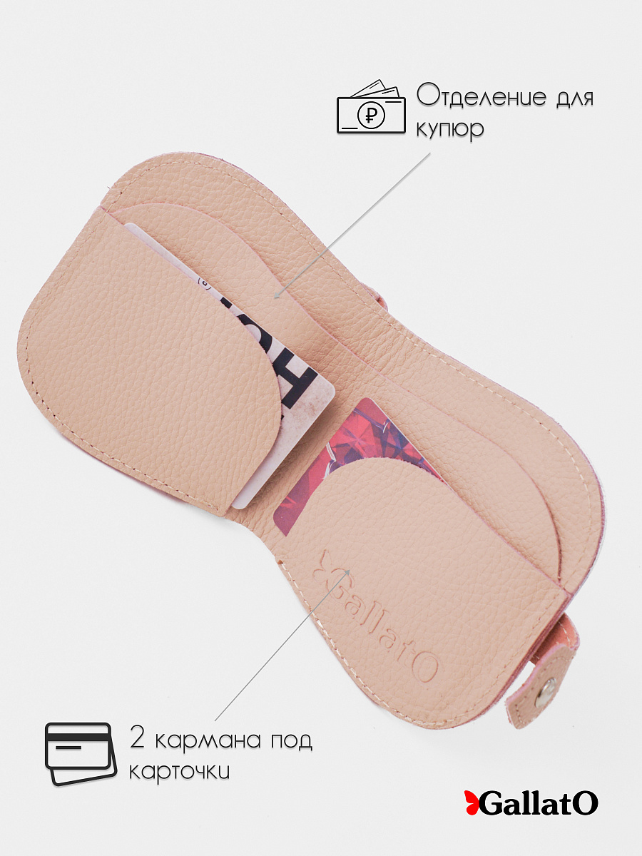 Кошелек - портмоне, картхолдер, бумажник выполнен из натуральной кожи. Удобен в использовании, помещается в карман джинс. Изделие содержит 2 отделения для карт, 1 отделение на кнопке под мелочь; Отделение для купюр и кармашек для монет. Размер 10 см х 10 см.