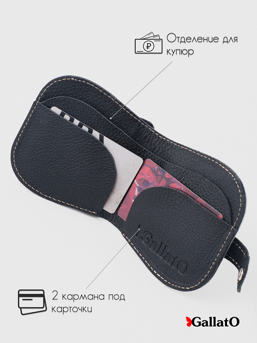 Кошелек - портмоне, картхолдер, бумажник выполнен из натуральной кожи. Удобен в использовании, помещается в карман джинс. Изделие содержит 2 отделения для карт, 1 отделение на кнопке под мелочь; Отделение для купюр и кармашек для монет. Размер 10 см х 10 см.