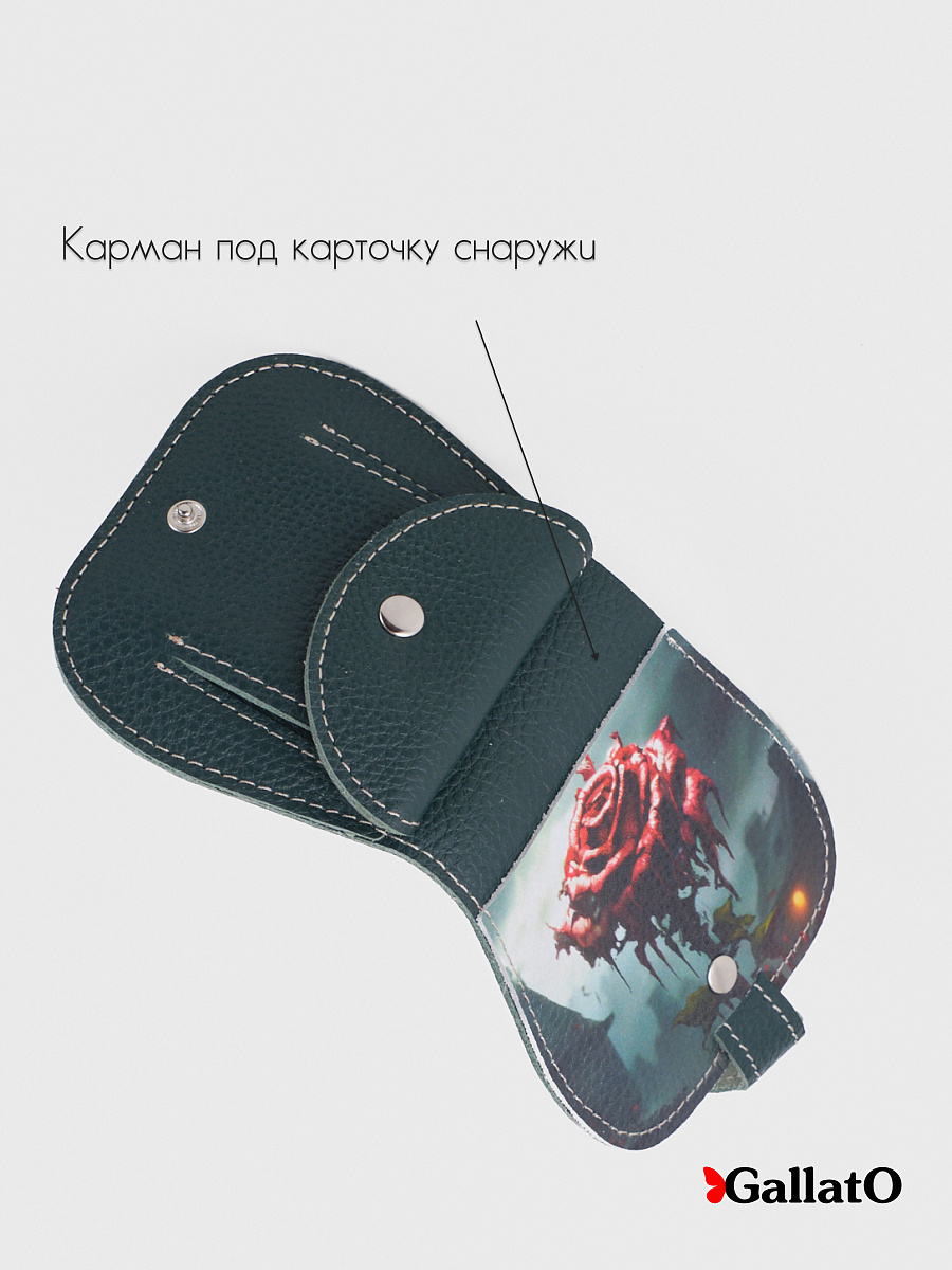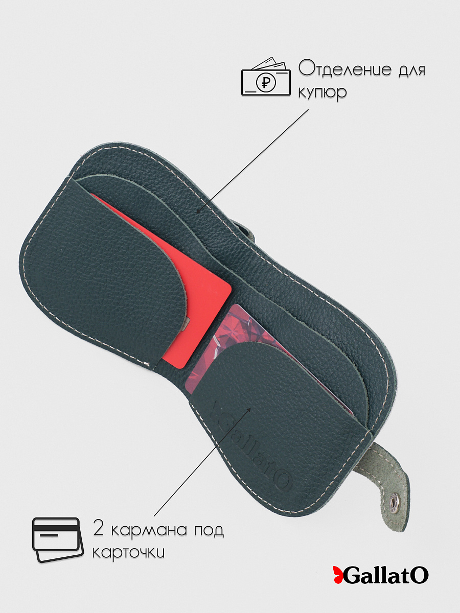 Кошелек - портмоне, картхолдер, бумажник выполнен из натуральной кожи. Удобен в использовании, помещается в карман джинс. Изделие содержит 2 отделения для карт, 1 отделение на кнопке под мелочь; Отделение для купюр и кармашек для монет. Размер 10 см х 10 см.