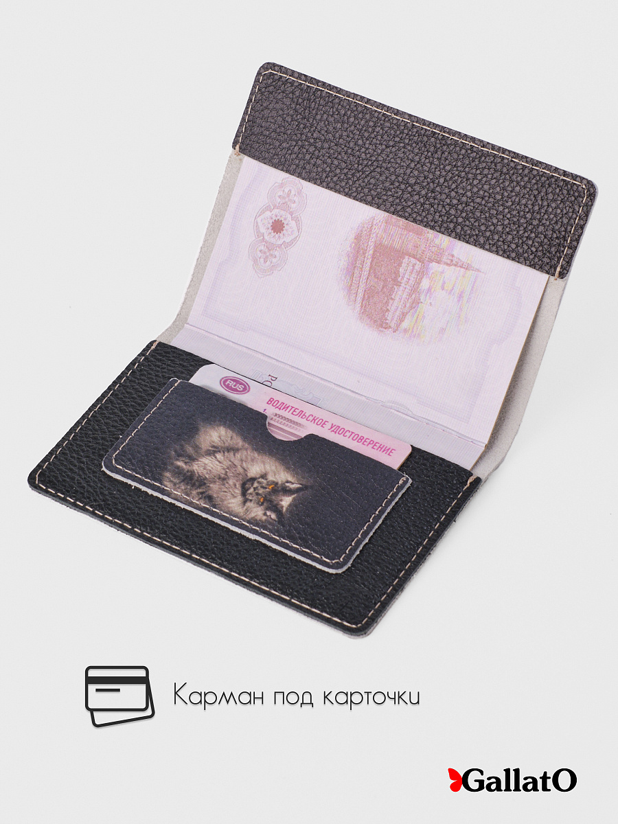 Обложка для паспорта с  карманом. Карман подходит для водительского удостоверения, карты или визитки. Размер кармана 9*4,5 см. Выполнена из кожи  КРС флоттер.