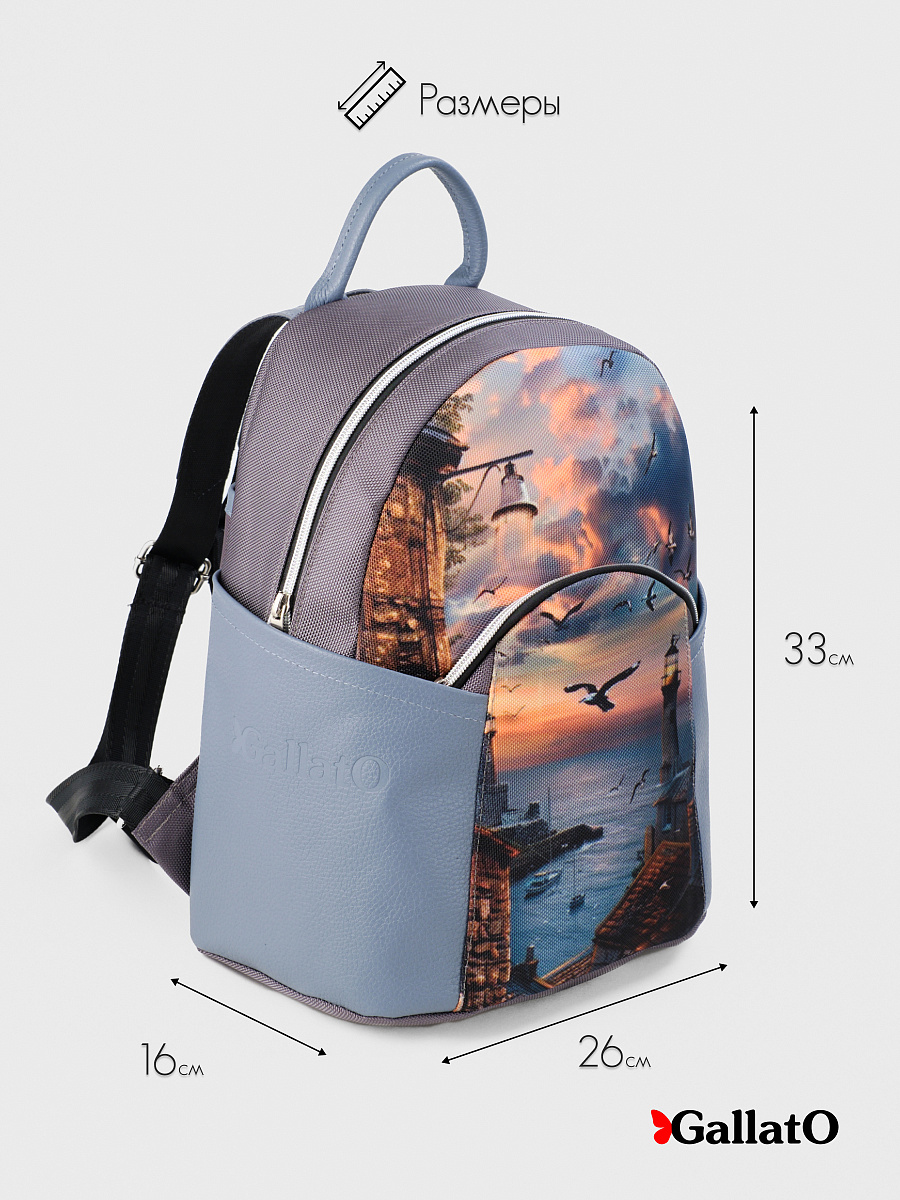 Современный, среднего размера, удобный для прогулок, путешествий и поездок рюкзак . tm GALLATO- выполнен из текстиля и отделкой из натуральной кожи. Состоит из двух отделений закрывающихся на молнию, внутри есть карманы для мелочей и телефона, отделение для планшета . Снаружи два кармана. Удобный ,легкий, прост в уходе. Идеально подходит как женщинам, девушкам так и юным леди. Размер сумки 33*26*18 см.