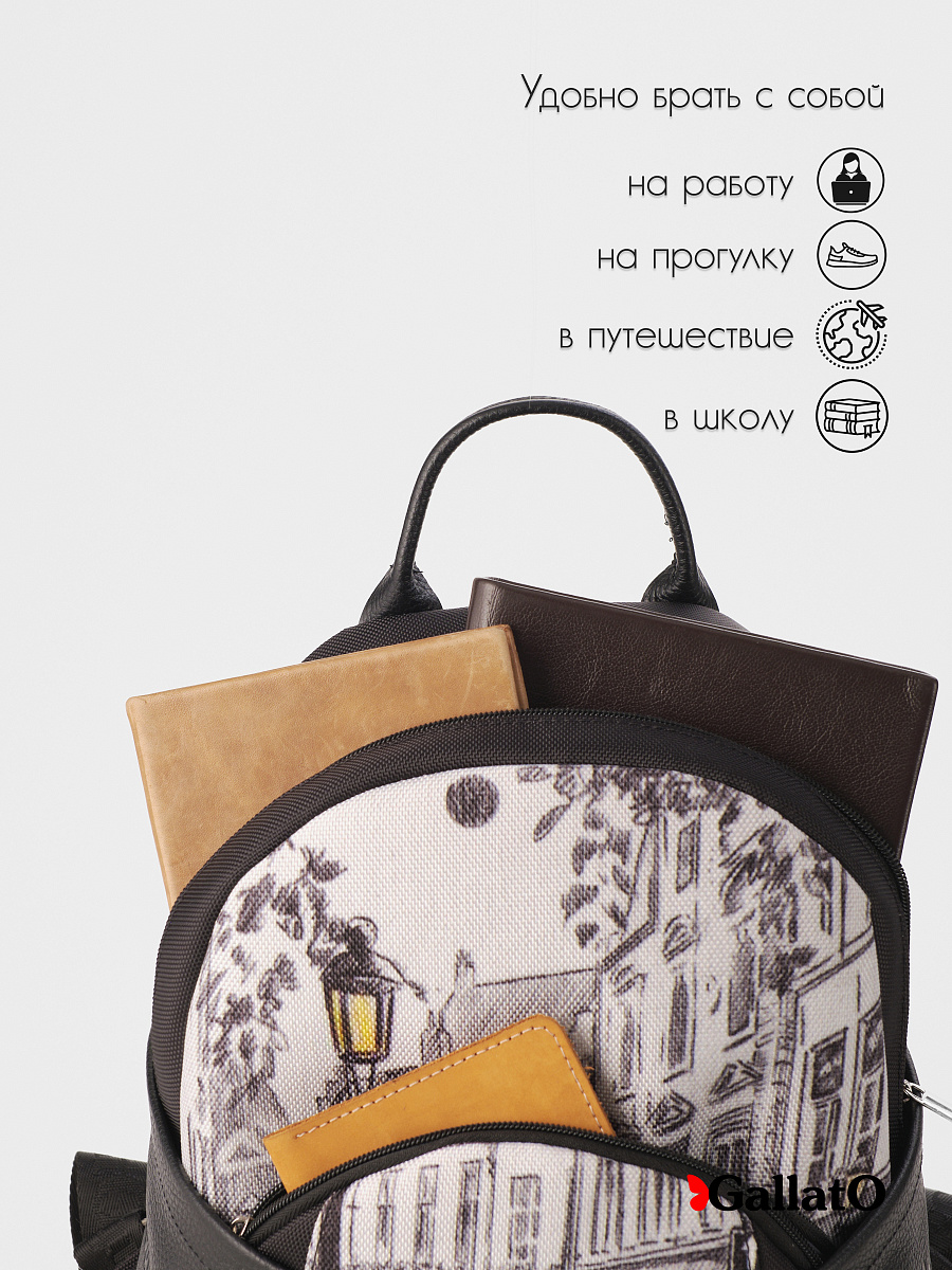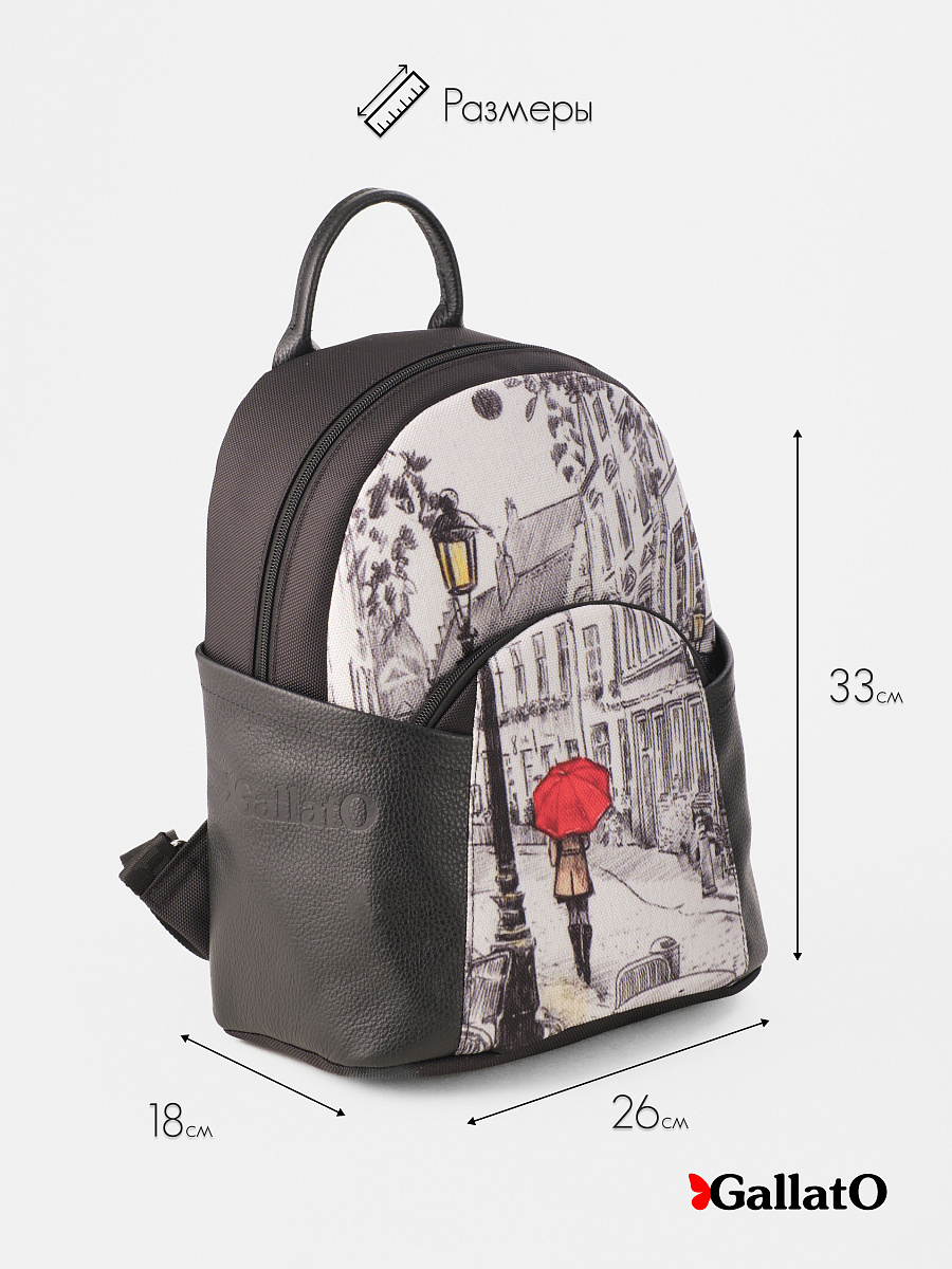 Современный, среднего размера, удобный для прогулок, путешествий и поездок рюкзак . tm GALLATO- выполнен из текстиля и отделкой из натуральной кожи. Состоит из двух отделений закрывающихся на молнию, внутри есть карманы для мелочей и телефона, отделение для планшета . Снаружи два кармана. Удобный ,легкий, прост в уходе. Идеально подходит как женщинам, девушкам так и юным леди. Размер сумки 33*26*18 см.