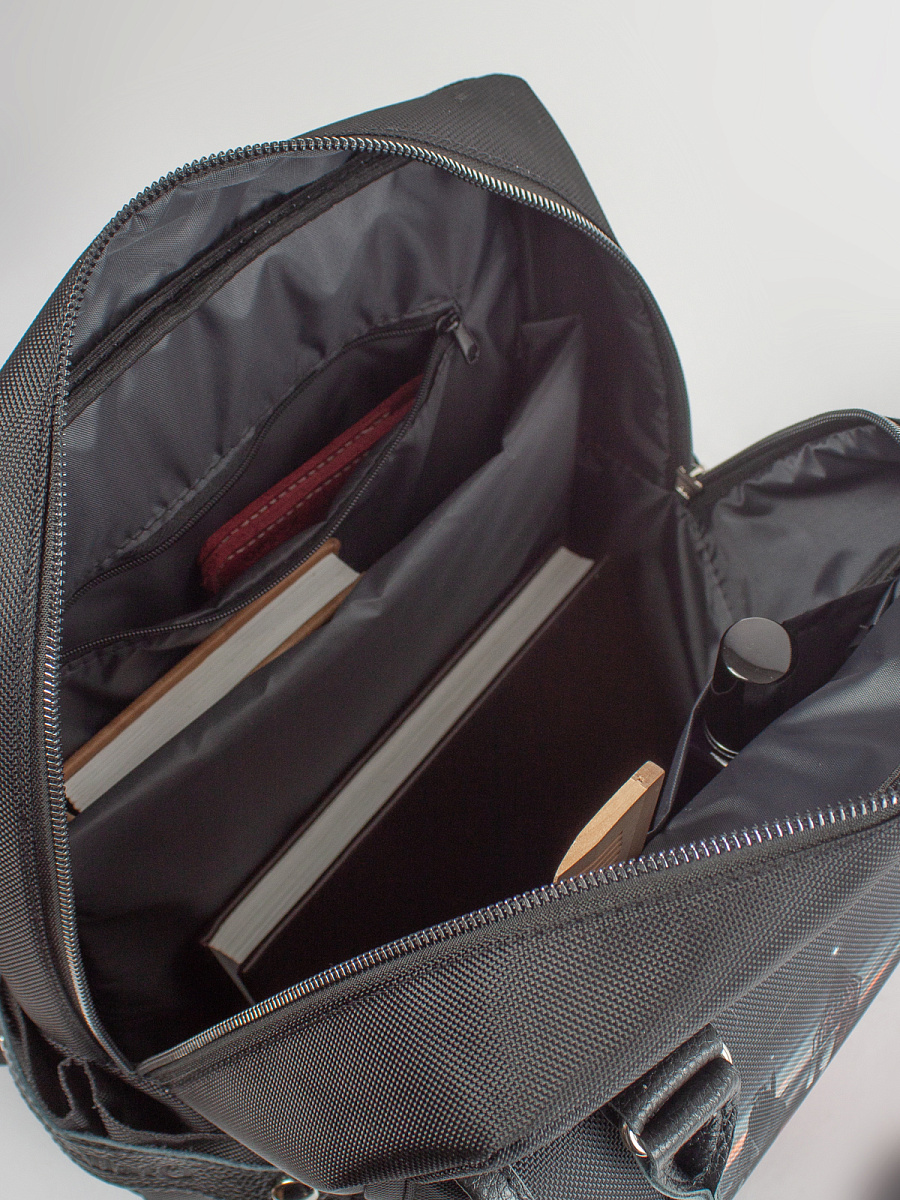 Городской рюкзак DINO Современный, удобный, рюкзак для эксплуатации в городских условиях выполненный из армированного нейлона и натуральной кожи, легкий, ноский ,крепкий, имеет отделение закрывающийся на молнию а так же наружный карман. Внутри есть противоударный карман для ноутбука или планшета, карман карман для мелочей, спинка рюкзака продублированная полиуретановой пеной, подходит для школы, прост в уходе.. Размер сумки 28*36*14 см