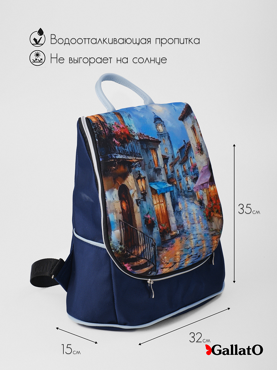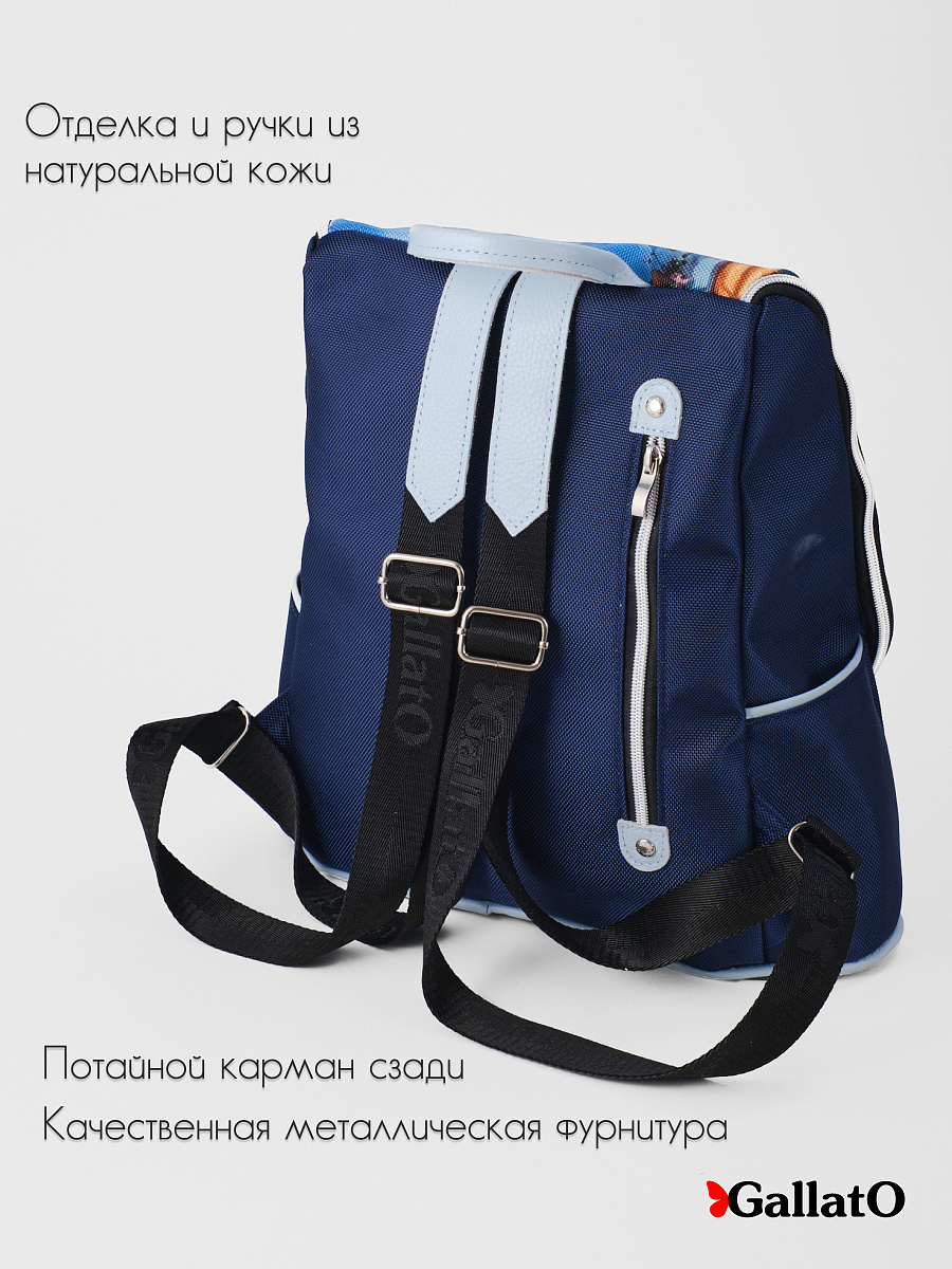 Рюкзак выполнен из текстиля с отделкой из натуральной кожи.  Снаружи на спине карман под молнию и  по бокам два кармана. Так же  внутри есть карман для мелочей на молнии и отделение для планшета.  Удобный, вместительный, легкий, прост в уходе. Сумки торговой марки Gallato сделаны из армированного нейлона с водоотталкивающей полиуретановой пропиткой.