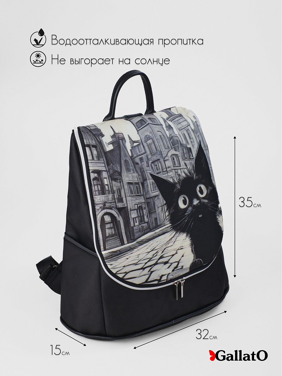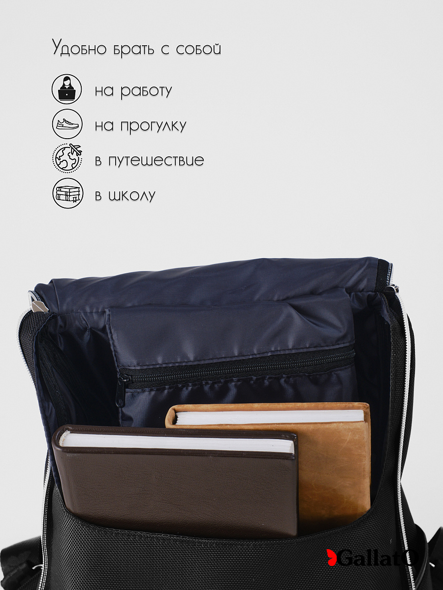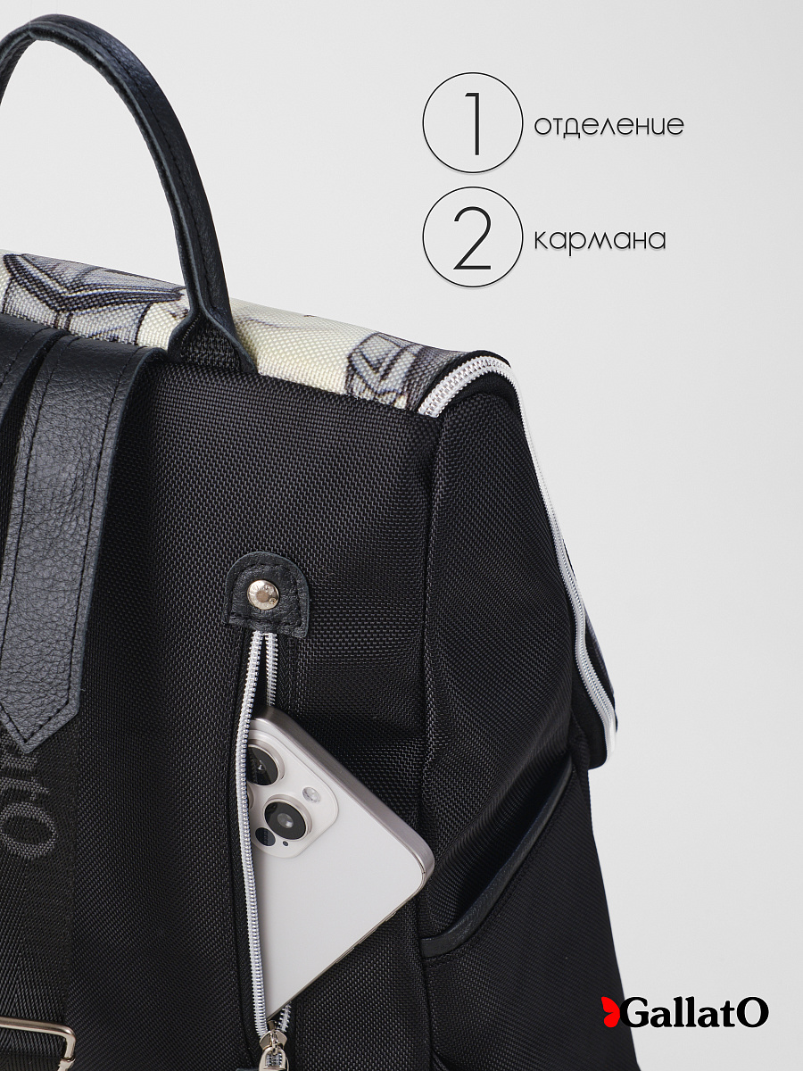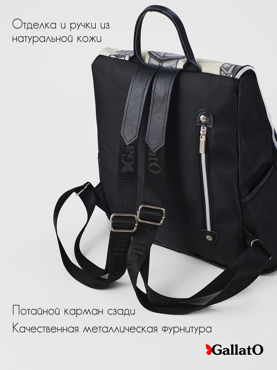 Рюкзак выполнен из текстиля с отделкой из натуральной кожи.  Снаружи на спине карман под молнию и  по бокам два кармана. Так же  внутри есть карман для мелочей на молнии и отделение для планшета.  Удобный, вместительный, легкий, прост в уходе. Сумки торговой марки Gallato сделаны из армированного нейлона с водоотталкивающей полиуретановой пропиткой.