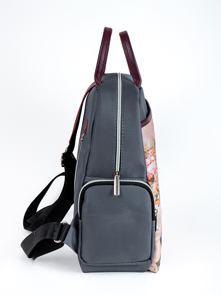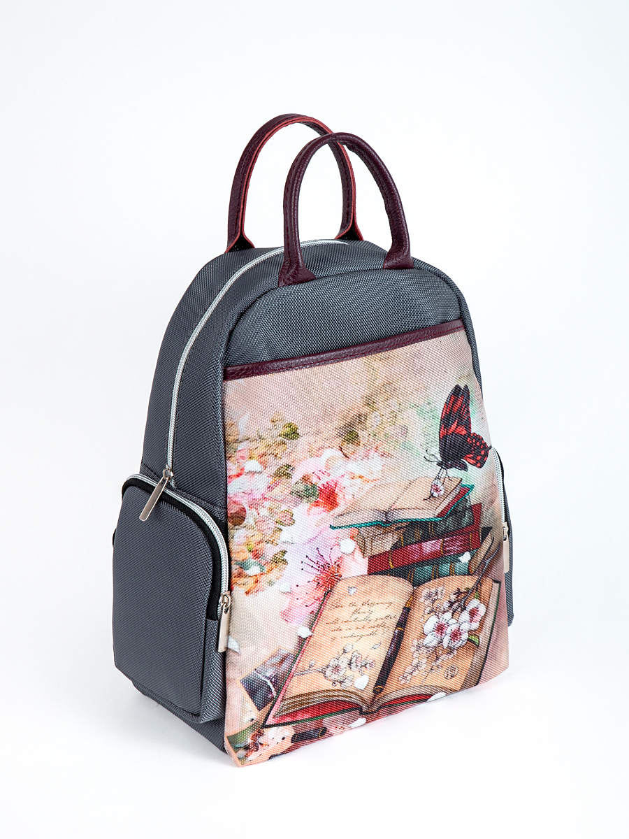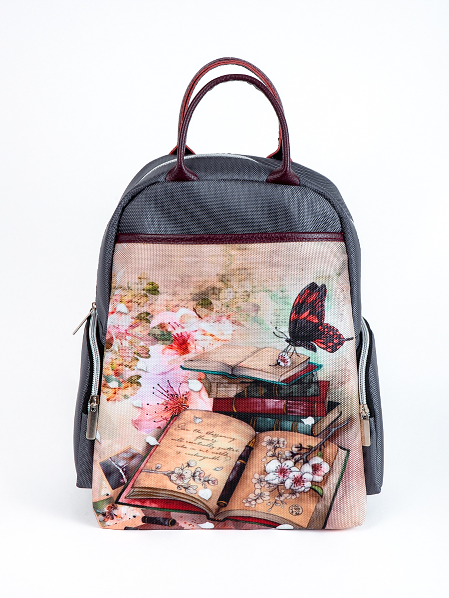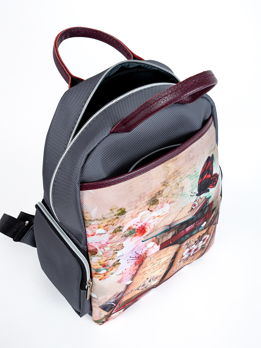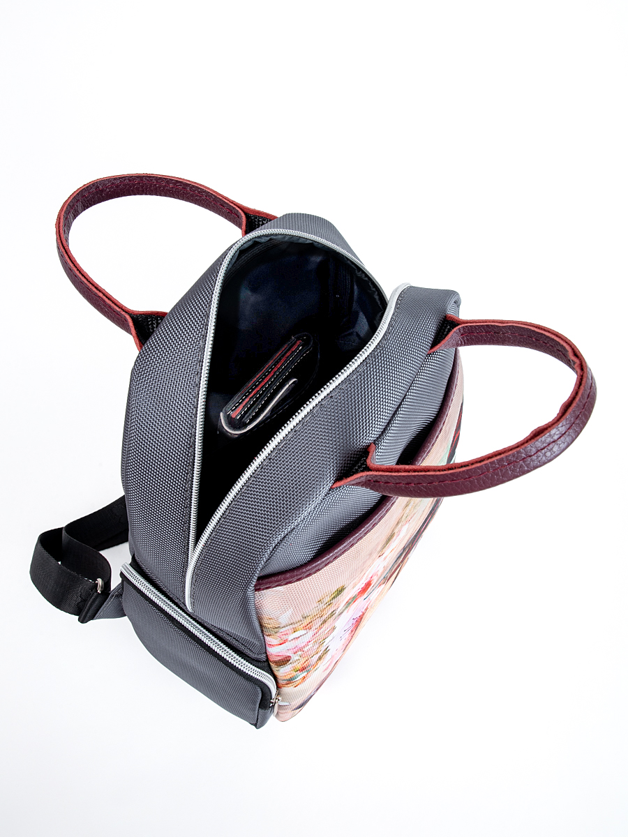 Рюкзак женский из текстиля и отделкой из натуральной кожи. Рюкзак городской среднего размера, удобный для прогулок, путешествий и поездок. Состоит из двух отделений закрывающихся на молнию, внутри есть карманы для мелочей и телефона, отделение для планшета . Снаружи по бокам два кармана на молнии. Сзади на спинке боковой карман (фото в карточке товара) Удобный, легкий, прост в уходе. Идеально подходит как женщинам, девушкам так и юным леди.