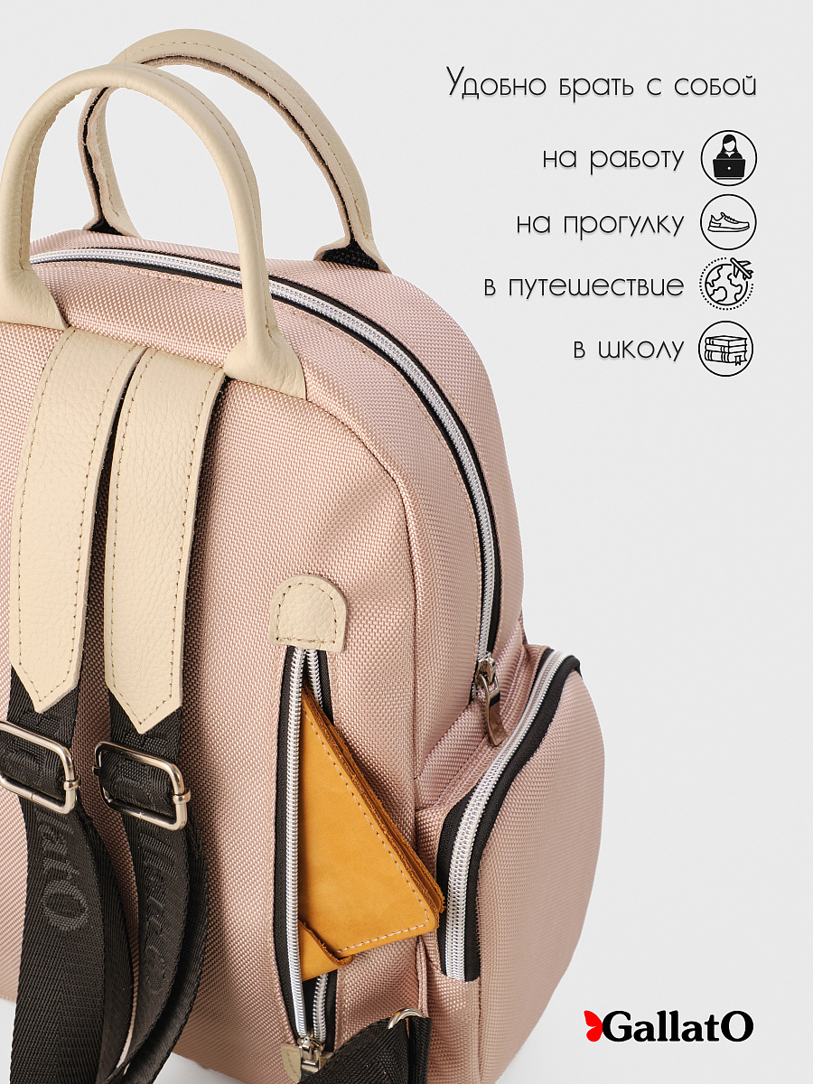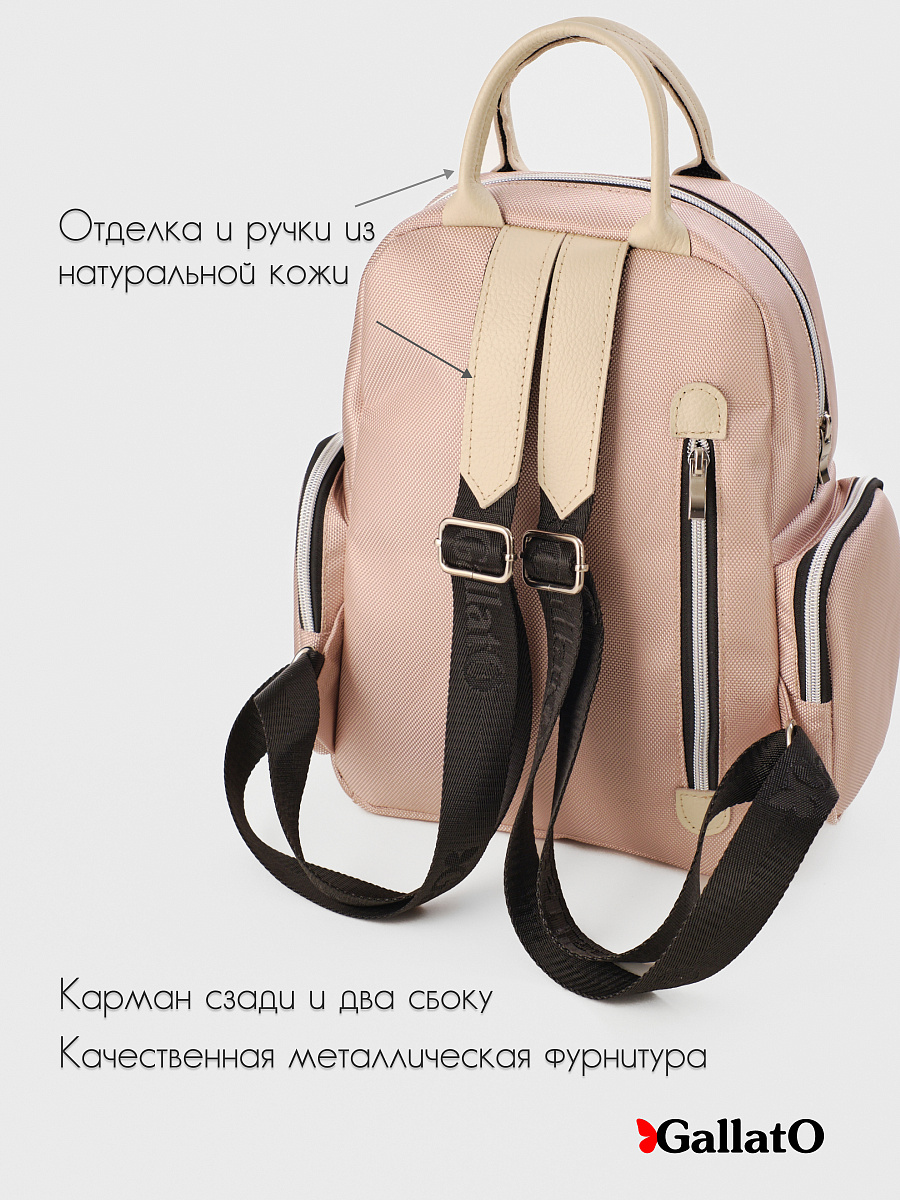 Рюкзак женский из текстиля и отделкой из натуральной кожи. Рюкзак городской среднего размера, удобный для прогулок, путешествий и поездок. Состоит из двух отделений закрывающихся на молнию, внутри есть карманы для мелочей и телефона, отделение для планшета . Снаружи по бокам два кармана на молнии. Сзади на спинке боковой карман (фото в карточке товара) Удобный, легкий, прост в уходе. Идеально подходит как женщинам, девушкам так и юным леди.
