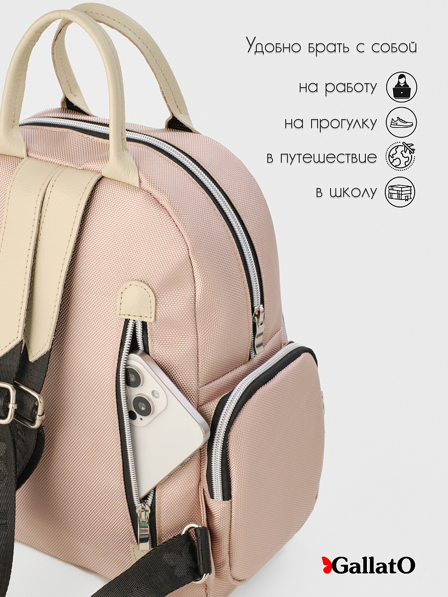 Рюкзак женский из текстиля и отделкой из натуральной кожи. Рюкзак городской среднего размера, удобный для прогулок, путешествий и поездок. Состоит из двух отделений закрывающихся на молнию, внутри есть карманы для мелочей и телефона, отделение для планшета . Снаружи по бокам два кармана на молнии. Сзади на спинке боковой карман (фото в карточке товара) Удобный, легкий, прост в уходе. Идеально подходит как женщинам, девушкам так и юным леди.