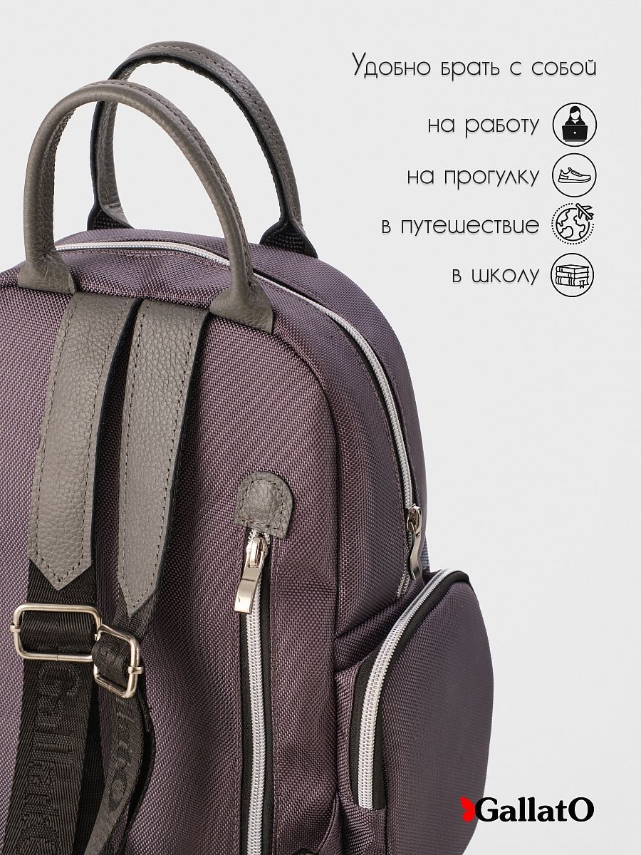 Рюкзак женский из текстиля и отделкой из натуральной кожи. Рюкзак городской среднего размера, удобный для прогулок, путешествий и поездок. Состоит из двух отделений закрывающихся на молнию, внутри есть карманы для мелочей и телефона, отделение для планшета . Снаружи по бокам два кармана на молнии. Сзади на спинке боковой карман (фото в карточке товара) Удобный, легкий, прост в уходе. Идеально подходит как женщинам, девушкам так и юным леди.