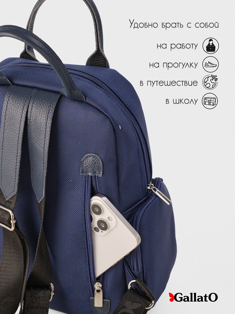 Рюкзак женский из текстиля и отделкой из натуральной кожи. Рюкзак городской среднего размера, удобный для прогулок, путешествий и поездок. Состоит из двух отделений закрывающихся на молнию, внутри есть карманы для мелочей и телефона, отделение для планшета . Снаружи по бокам два кармана на молнии. Сзади на спинке боковой карман (фото в карточке товара) Удобный, легкий, прост в уходе. Идеально подходит как женщинам, девушкам так и юным леди.