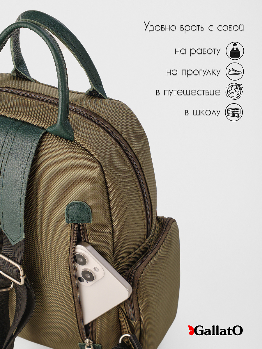 Рюкзак женский из текстиля и отделкой из натуральной кожи. Рюкзак городской среднего размера, удобный для прогулок, путешествий и поездок. Состоит из двух отделений закрывающихся на молнию, внутри есть карманы для мелочей и телефона, отделение для планшета . Снаружи по бокам два кармана на молнии. Сзади на спинке боковой карман (фото в карточке товара) Удобный, легкий, прост в уходе. Идеально подходит как женщинам, девушкам так и юным леди.