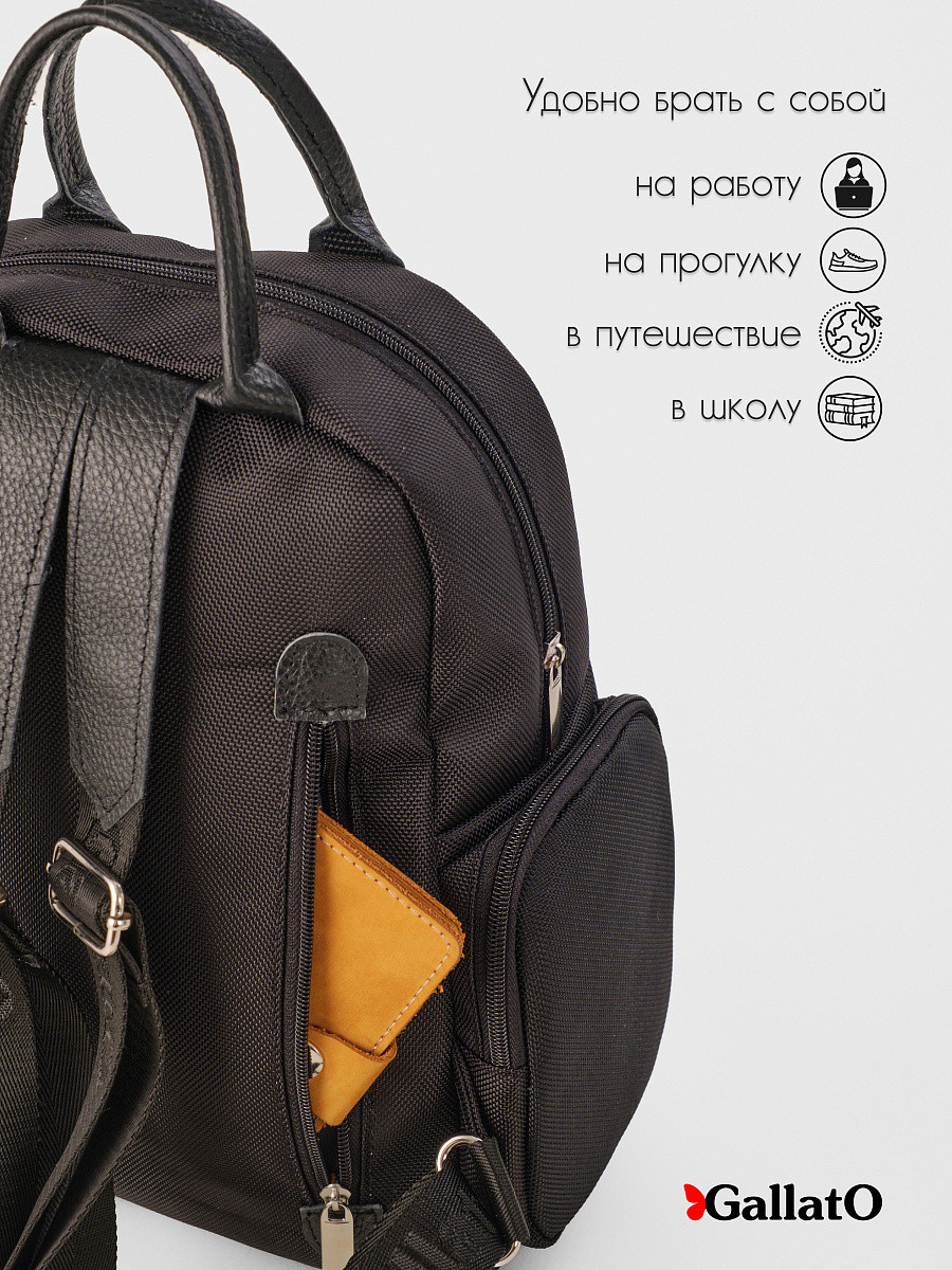 Рюкзак женский из текстиля и отделкой из натуральной кожи. Рюкзак городской среднего размера, удобный для прогулок, путешествий и поездок. Состоит из двух отделений закрывающихся на молнию, внутри есть карманы для мелочей и телефона, отделение для планшета . Снаружи по бокам два кармана на молнии. Сзади на спинке боковой карман (фото в карточке товара) Удобный, легкий, прост в уходе. Идеально подходит как женщинам, девушкам так и юным леди.