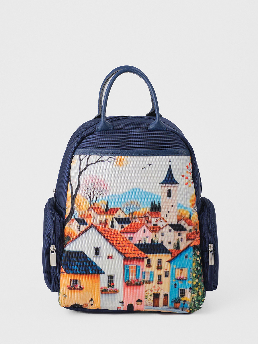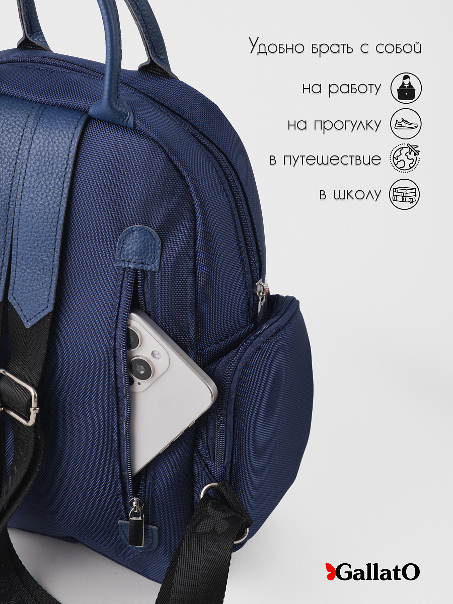 Рюкзак женский из текстиля и отделкой из натуральной кожи. Рюкзак городской среднего размера, удобный для прогулок, путешествий и поездок. Состоит из двух отделений закрывающихся на молнию, внутри есть карманы для мелочей и телефона, отделение для планшета . Снаружи по бокам два кармана на молнии. Сзади на спинке боковой карман (фото в карточке товара) Удобный, легкий, прост в уходе. Идеально подходит как женщинам, девушкам так и юным леди.