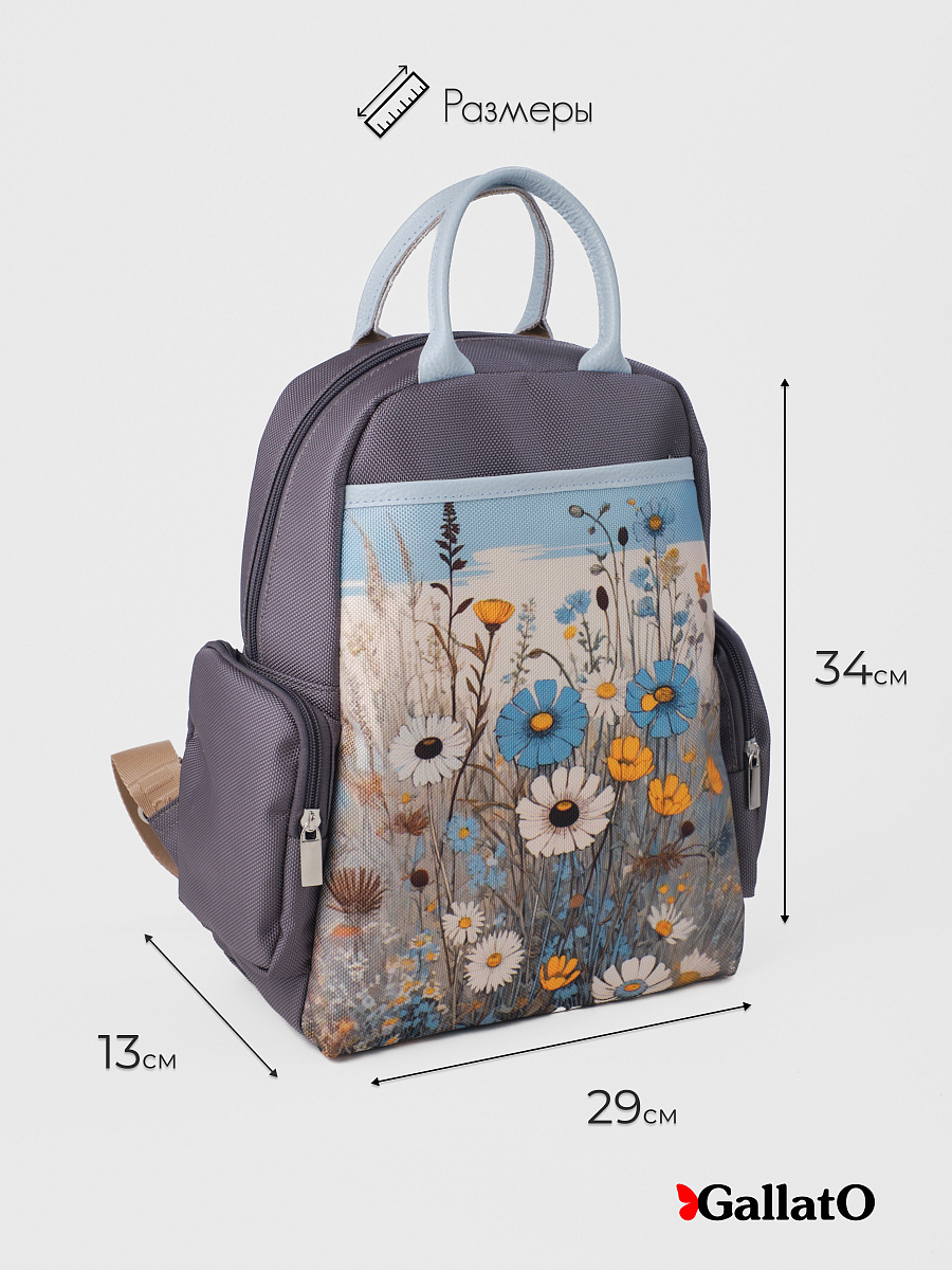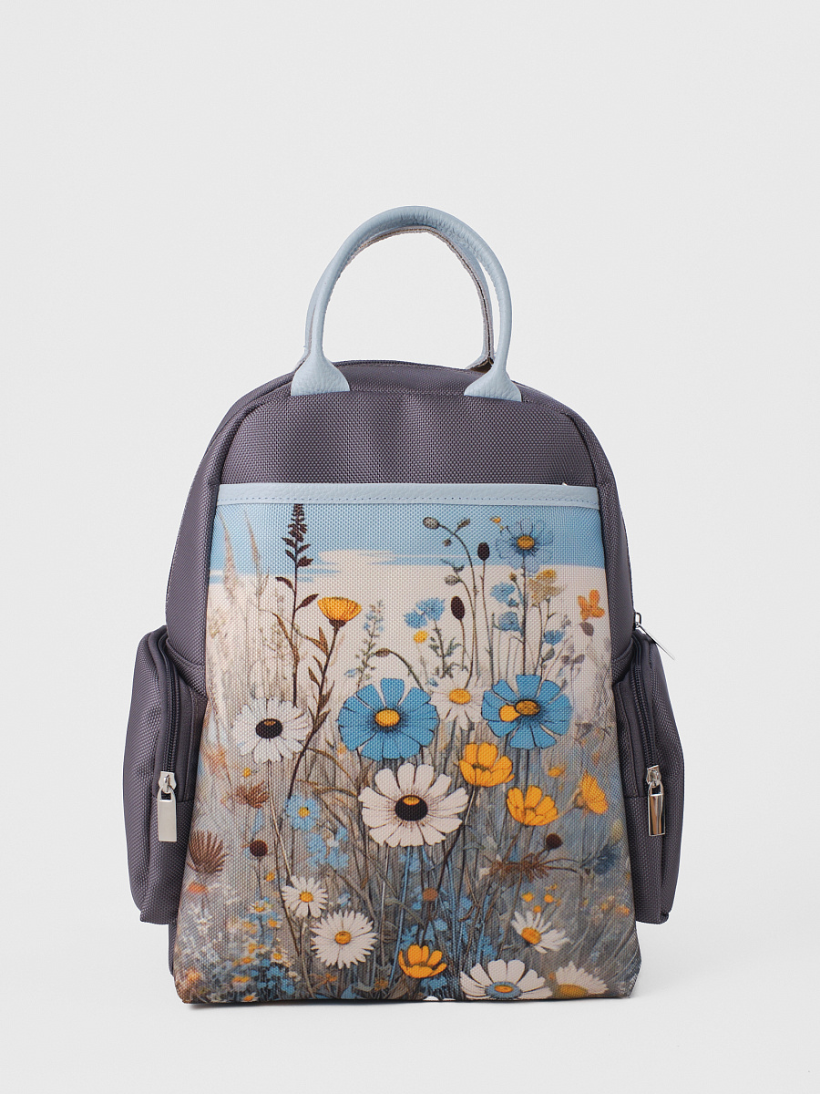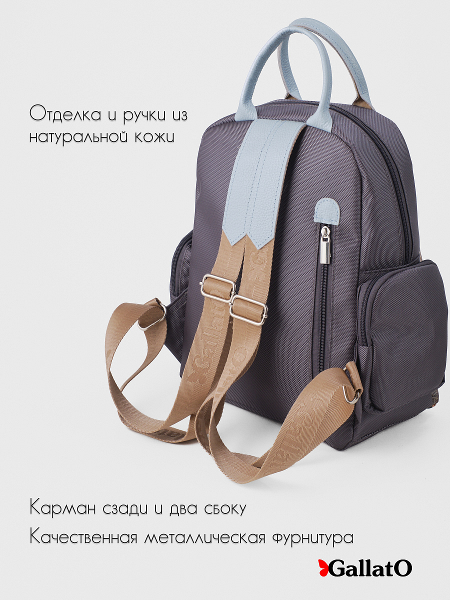 Рюкзак женский из текстиля и отделкой из натуральной кожи. Рюкзак городской среднего размера, удобный для прогулок, путешествий и поездок. Состоит из двух отделений закрывающихся на молнию, внутри есть карманы для мелочей и телефона, отделение для планшета . Снаружи по бокам два кармана на молнии. Сзади на спинке боковой карман (фото в карточке товара) Удобный, легкий, прост в уходе. Идеально подходит как женщинам, девушкам так и юным леди.