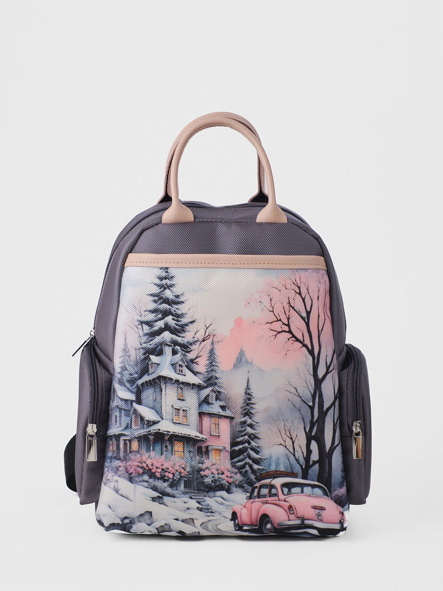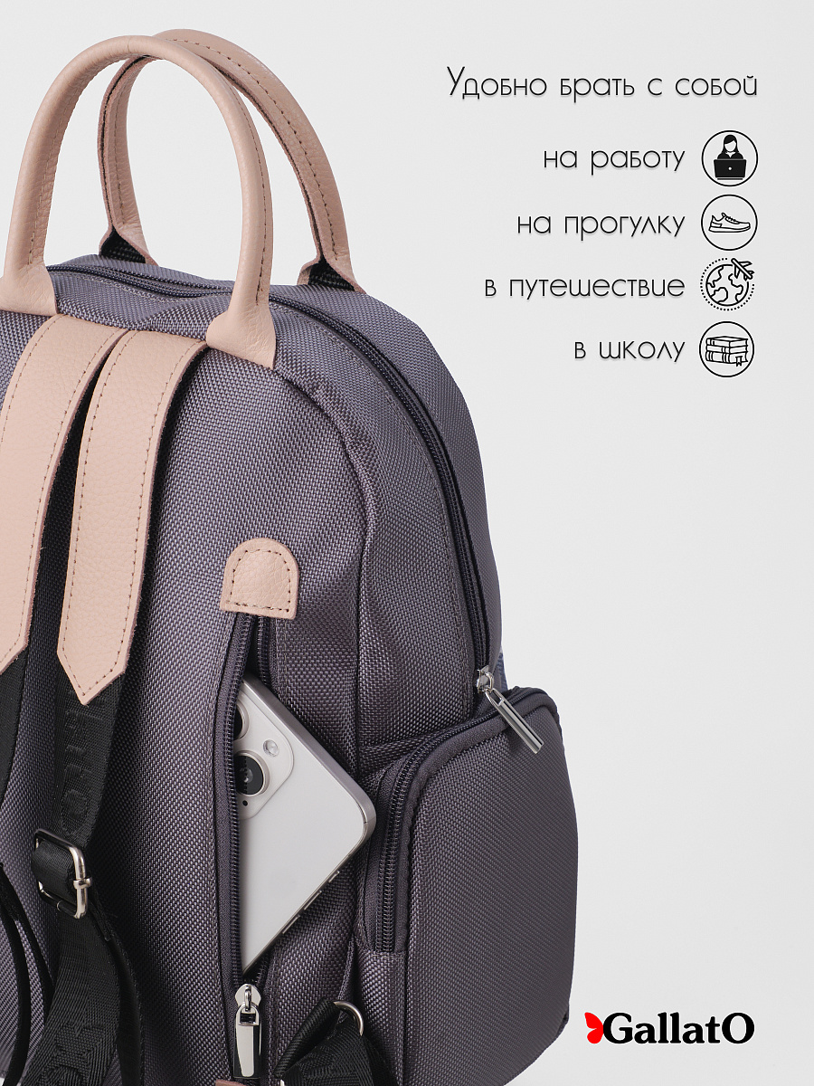 Рюкзак женский из текстиля и отделкой из натуральной кожи. Рюкзак городской среднего размера, удобный для прогулок, путешествий и поездок. Состоит из двух отделений закрывающихся на молнию, внутри есть карманы для мелочей и телефона, отделение для планшета . Снаружи по бокам два кармана на молнии. Сзади на спинке боковой карман (фото в карточке товара) Удобный, легкий, прост в уходе. Идеально подходит как женщинам, девушкам так и юным леди.