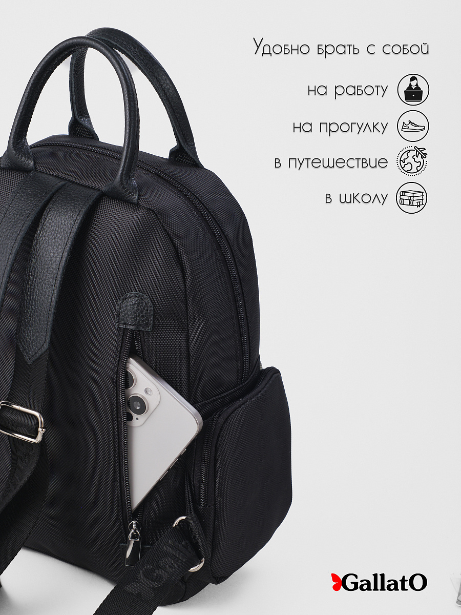Рюкзак женский из текстиля и отделкой из натуральной кожи. Рюкзак городской среднего размера, удобный для прогулок, путешествий и поездок. Состоит из двух отделений закрывающихся на молнию, внутри есть карманы для мелочей и телефона, отделение для планшета . Снаружи по бокам два кармана на молнии. Сзади на спинке боковой карман (фото в карточке товара) Удобный, легкий, прост в уходе. Идеально подходит как женщинам, девушкам так и юным леди.