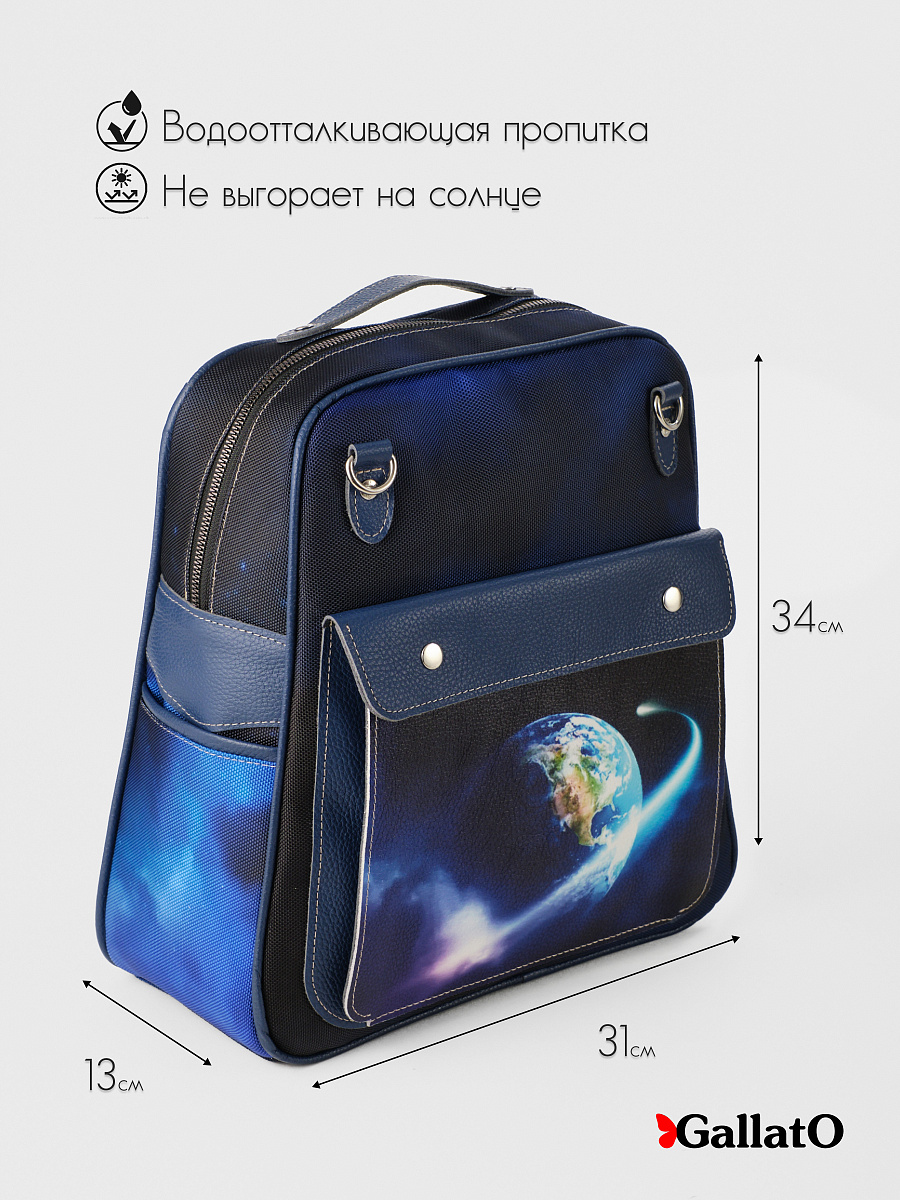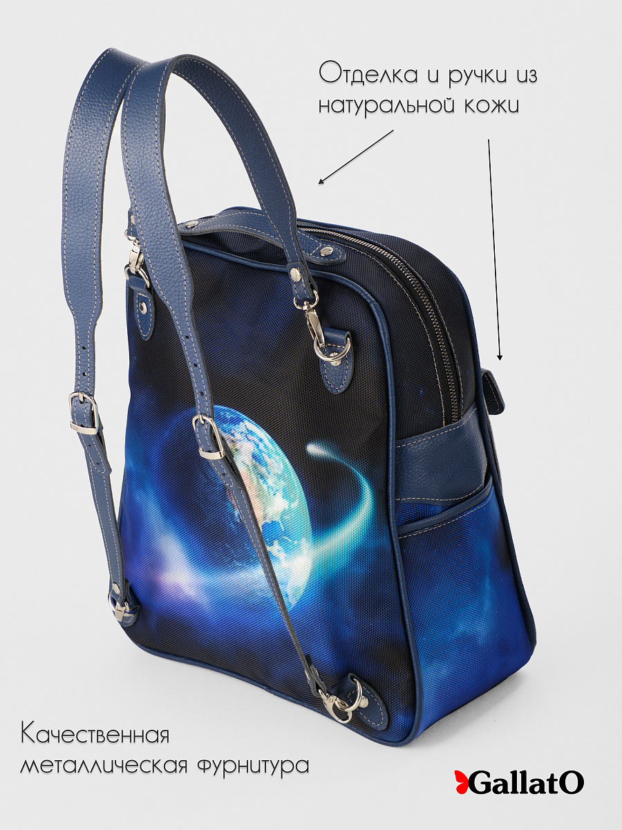 ITELIA-3(карман)- это легендарный рюкзак-сумка. По просьбам наших покупателей мы добавили 2 боковых и один большой кожаный карман с принтом на лицевой части сумки. Так же сделали более широкие, регулируемые лямки на карабинах. Лямки можно перестегивать крест на крест , увеличивать или уменьшать их длину . Женская сумка-рюкзак tm GALLATO выполнена из текстиля, с ручками и отделкой из натуральной кожи, внутри есть карманы для мелочей,удобная для переноски документов формата А4. Легкая, проста в уходе. Размер сумки 31*34*13 см