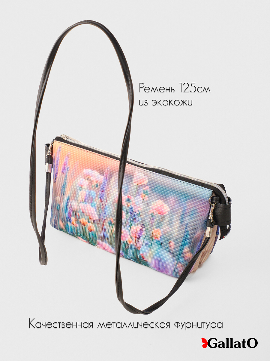 Современный, удобный, клатч выполнен из текстиля, имеет 3 больших отделения. В комплекте идет ремешок из эко-кожи, длинна 1 м 20 см, регулировка ремешка производиться путем разжатия скобы на конце ремня.