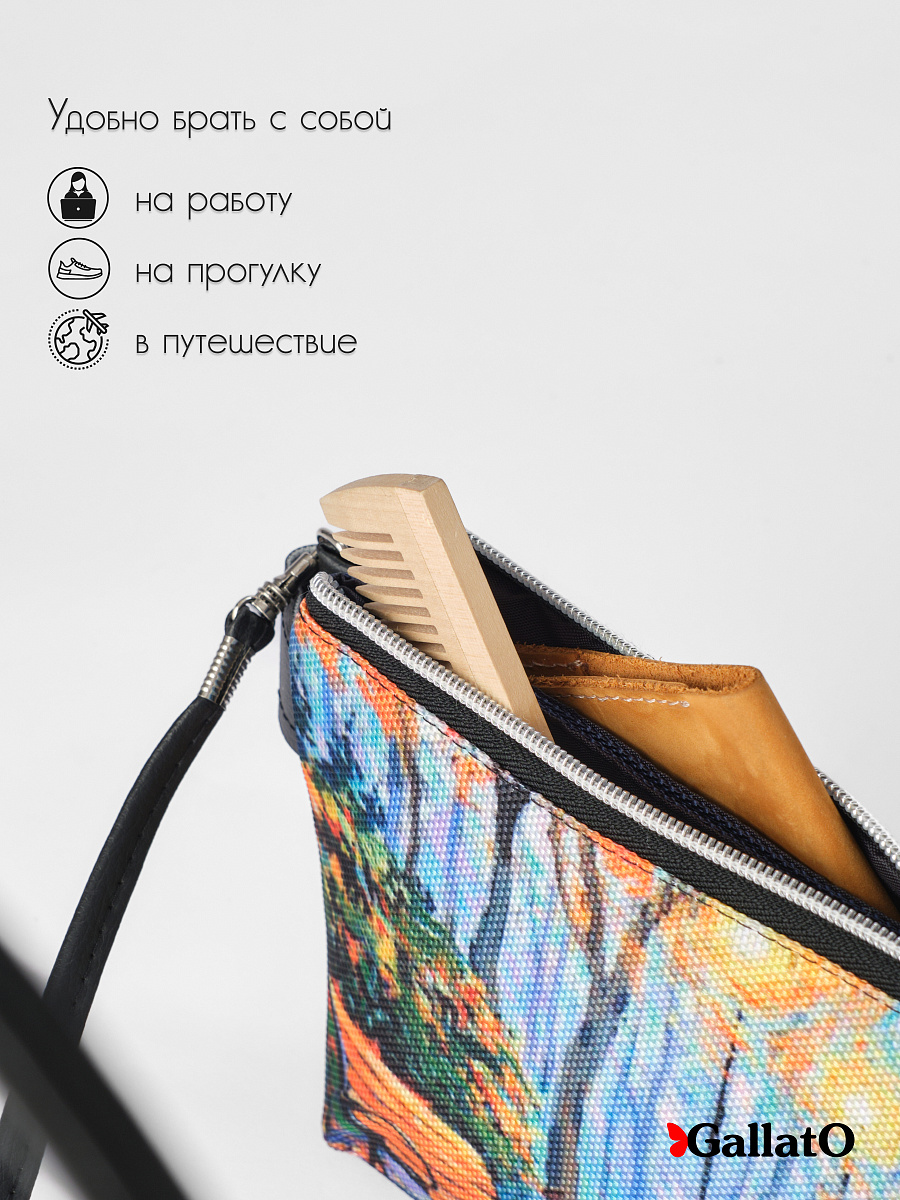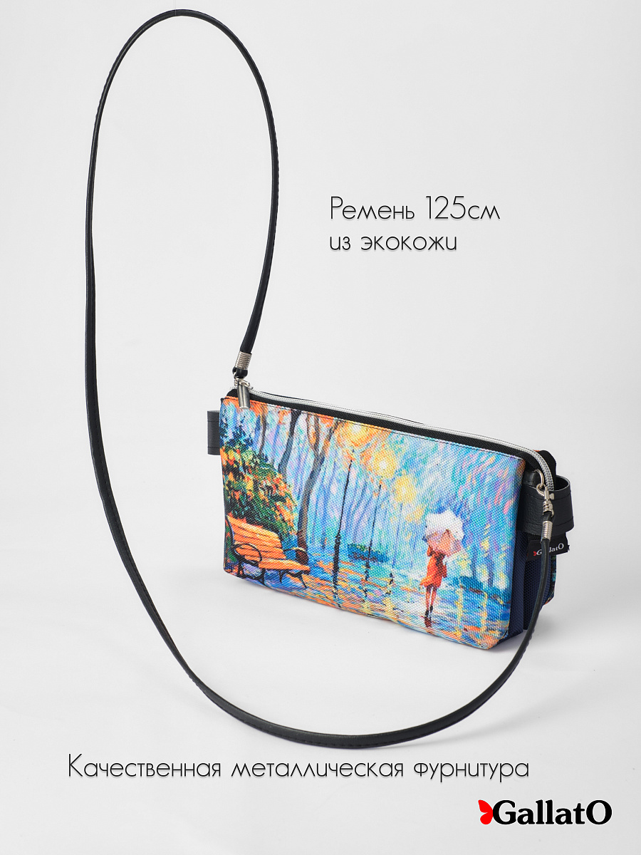Современный, удобный, клатч выполнен из текстиля, имеет 3 больших отделения. В комплекте идет ремешок из эко-кожи, длинна 1 м 20 см, регулировка ремешка производиться путем разжатия скобы на конце ремня.