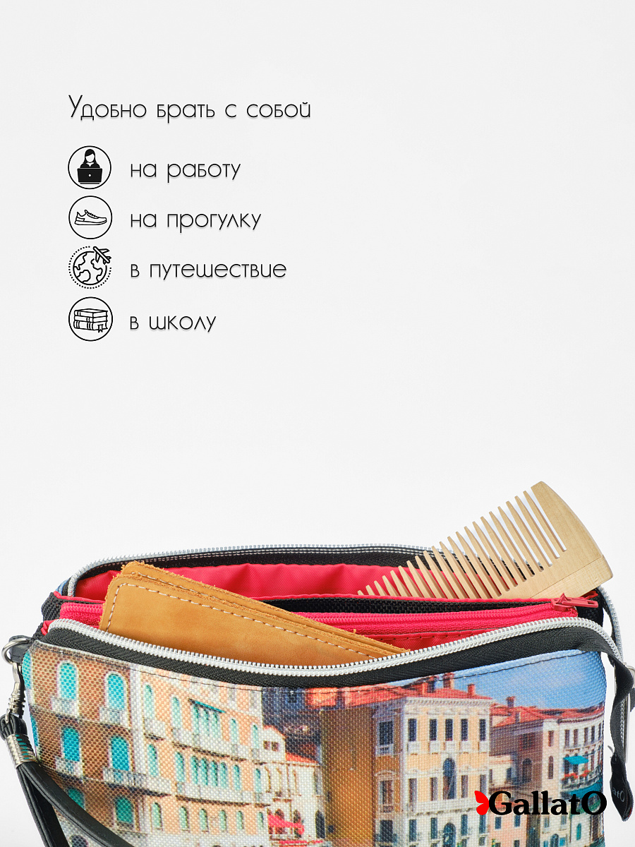 Косметичка-пенал - это большая, прочная, вместительная косметичка для нужных женских вещей. Имеет 3 больших отделения, а так же вшитый кошелек на молнии, куда хорошо помещаются деньги и мобильный телефон. Удобна для путешествий, прогулок, командировок и отдыха. Так же подходит для школьников в качестве пенала. В пенал входит 20 см линейка, циркуль в чехле и множество ручек и карандашей. Используемый материал устойчив к износу, не пропускает влагу и служит долго. Сумки торговой марки Gallato сделаны из армированного нейлона с водоотталкивающей полиуретановой пропиткой.