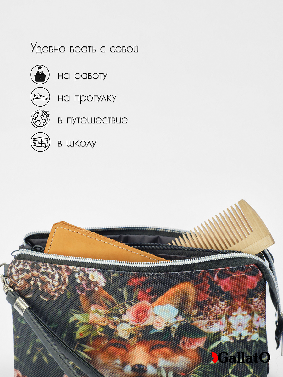Косметичка-пенал - это большая, прочная, вместительная косметичка для нужных женских вещей. Имеет 3 больших отделения, а так же вшитый кошелек на молнии, куда хорошо помещаются деньги и мобильный телефон. Удобна для путешествий, прогулок, командировок и отдыха. Так же подходит для школьников в качестве пенала. В пенал входит 20 см линейка, циркуль в чехле и множество ручек и карандашей. Используемый материал устойчив к износу, не пропускает влагу и служит долго. Сумки торговой марки Gallato сделаны из армированного нейлона с водоотталкивающей полиуретановой пропиткой.