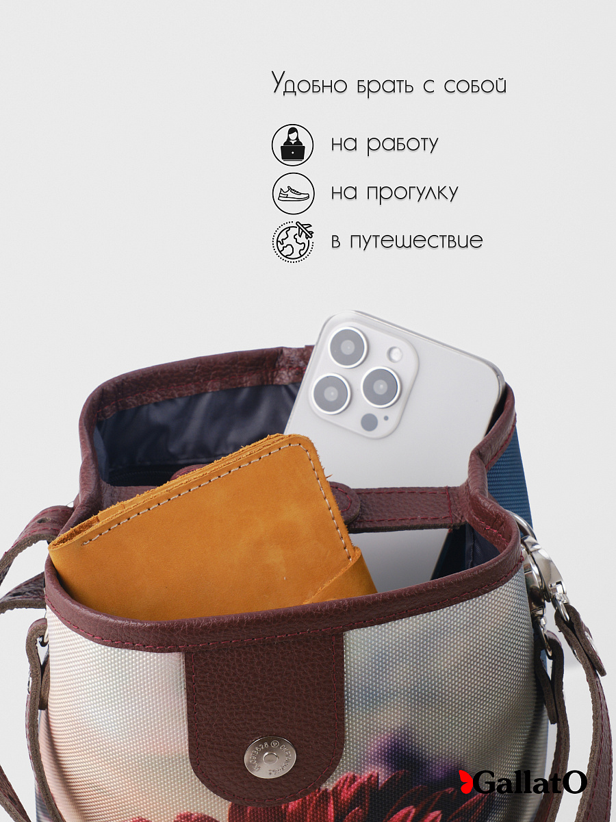 Женская сумка Iris - незаменимая спутница каждой стильной модницы. Несмотря на компактные размеры, которые придают сумке аккуратный внешний вид, модель очень вместительная. Внутри 2 отдельных кармана под молниями 2 ремня: Длинный до 125 см и короткий - 40 см. Материал: Армированный нейлон и натуральная кожа. Размер сумки: 20х18х14 см