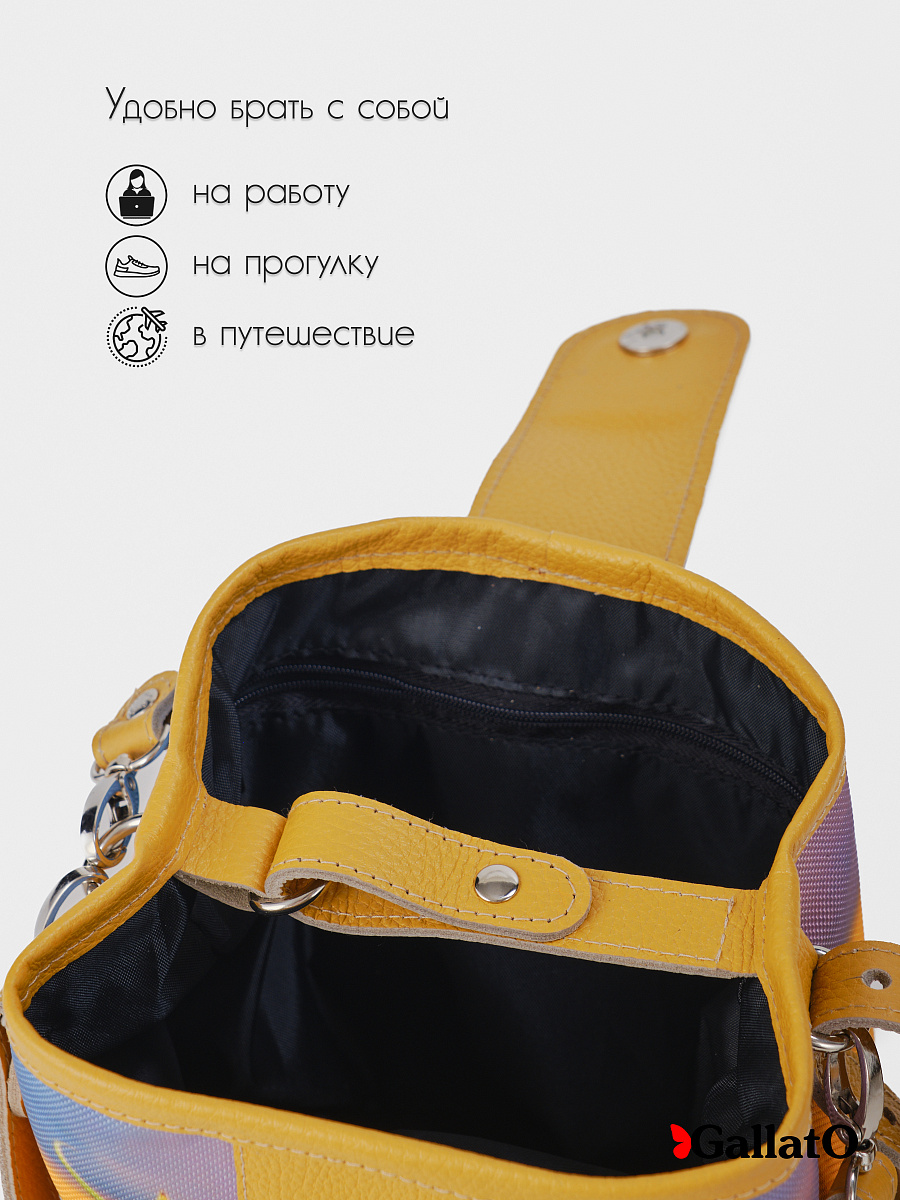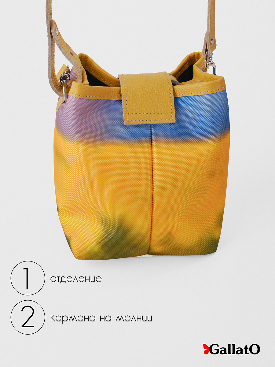 Женская сумка Iris - незаменимая спутница каждой стильной модницы. Несмотря на компактные размеры, которые придают сумке аккуратный внешний вид, модель очень вместительная. Внутри 2 отдельных кармана под молниями 2 ремня: Длинный до 125 см и короткий - 40 см. Материал: Армированный нейлон и натуральная кожа. Размер сумки: 20х18х14 см