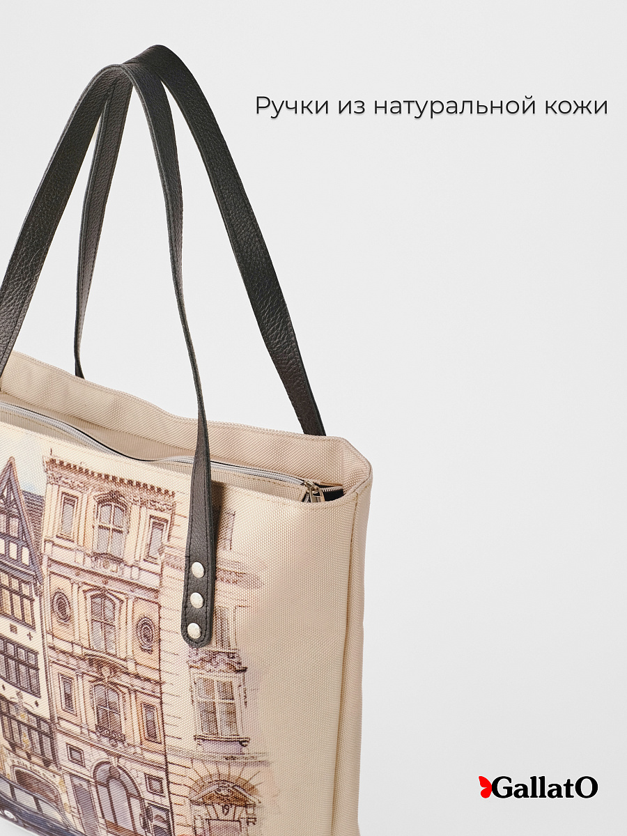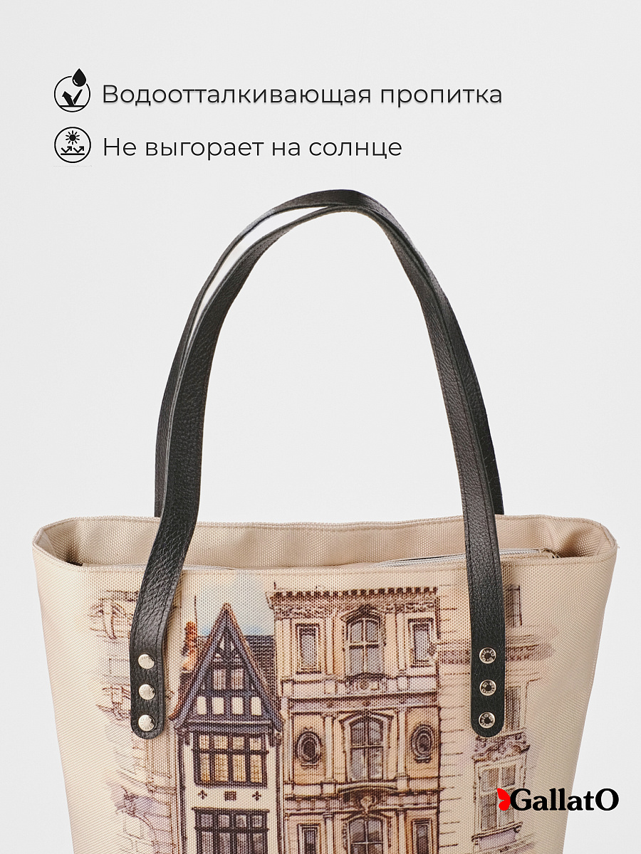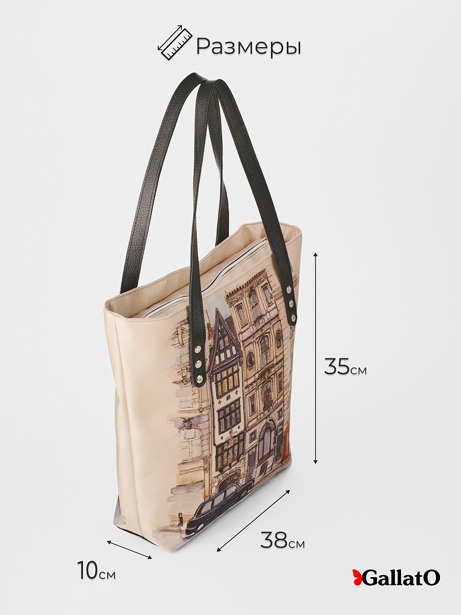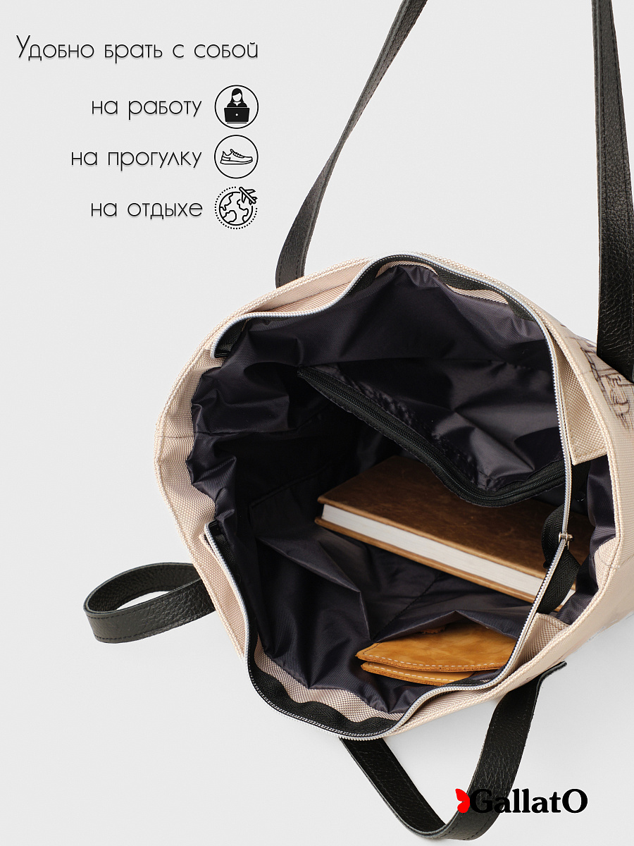 Женская сумка AFINA тм GALLATO изящной формы с удлиненными ручками которые позволят носить сумку на плече. Используемый материал, устойчив к износу, не пропускает влагу и долговечен. Современная, удобная, сумка выполнена из текстиля, с ручками и отделкой из натуральной кожи, внутри сумки есть карманы для мелочей. Легкая, проста в уходе. Ткань не линяет. Размер сумки 35 х 38 х 10 см.