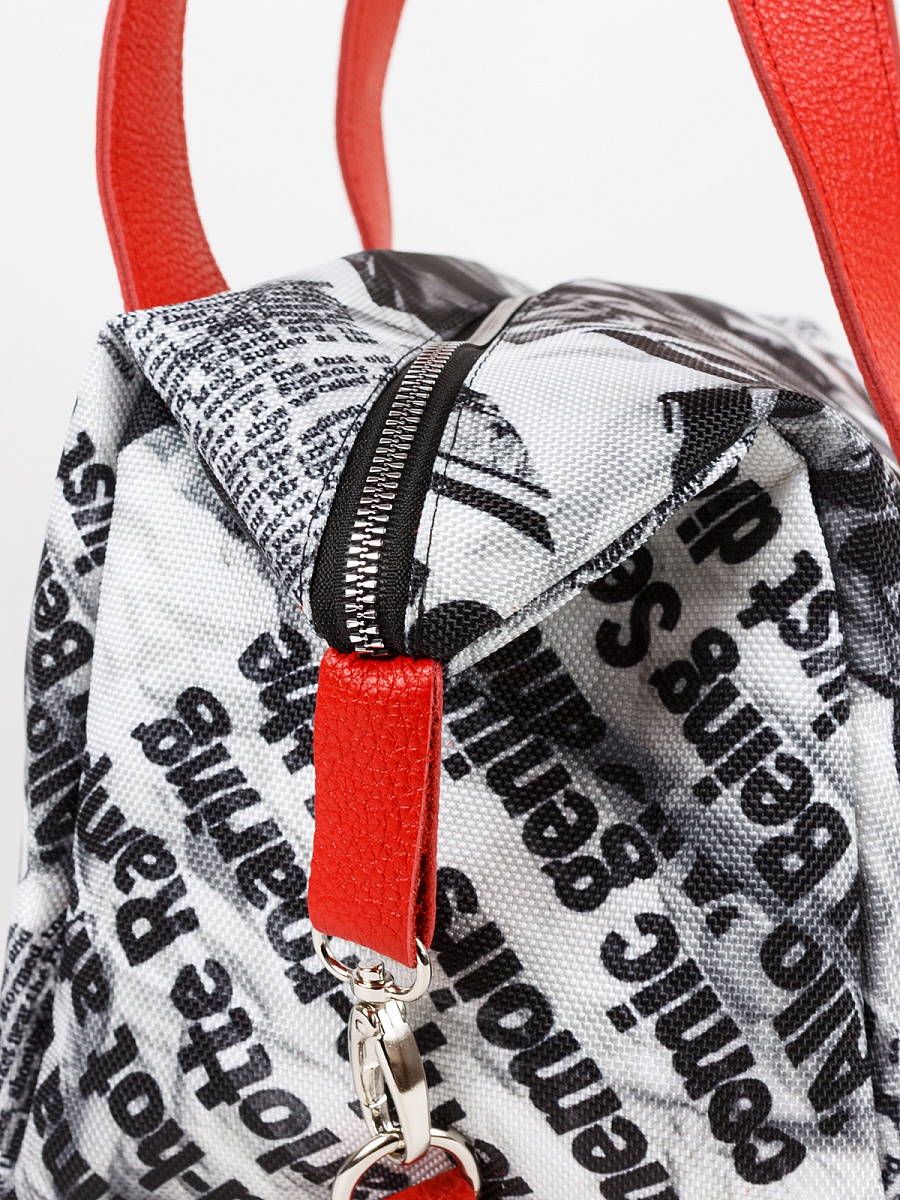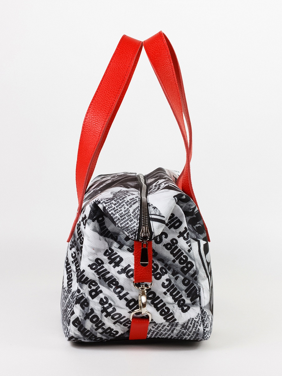 Современная, удобная, сумка выполнена из текстиля, с ручками и отделкой из натуральной кож. Внутри сумки есть два небольших кармана для телефона, один открытый глубокий карман, формата А5 и карман на молнии. Сумка легкая, проста в уходе, очень вместительная. Ткань не линяет. По бокам сумки имеются карабины, отстегнув их сумка становится намного больше. Сумки торговой марки Gallato сделаны из армированного нейлона с водоотталкивающей полиуретановой пропиткой.