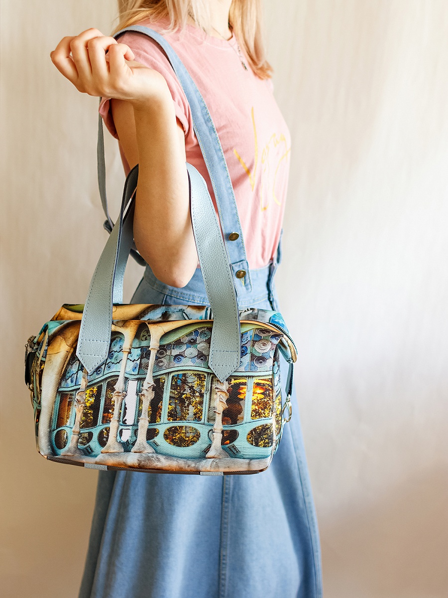Современная, удобная, сумка выполнена из текстиля, с ручками и отделкой из натуральной кож. Внутри сумки есть два небольших кармана для телефона, один открытый глубокий карман, формата А5 и карман на молнии. Сумка легкая, проста в уходе, очень вместительная. Ткань не линяет. По бокам сумки имеются карабины, отстегнув их сумка становится намного больше. Сумки торговой марки Gallato сделаны из армированного нейлона с водоотталкивающей полиуретановой пропиткой.