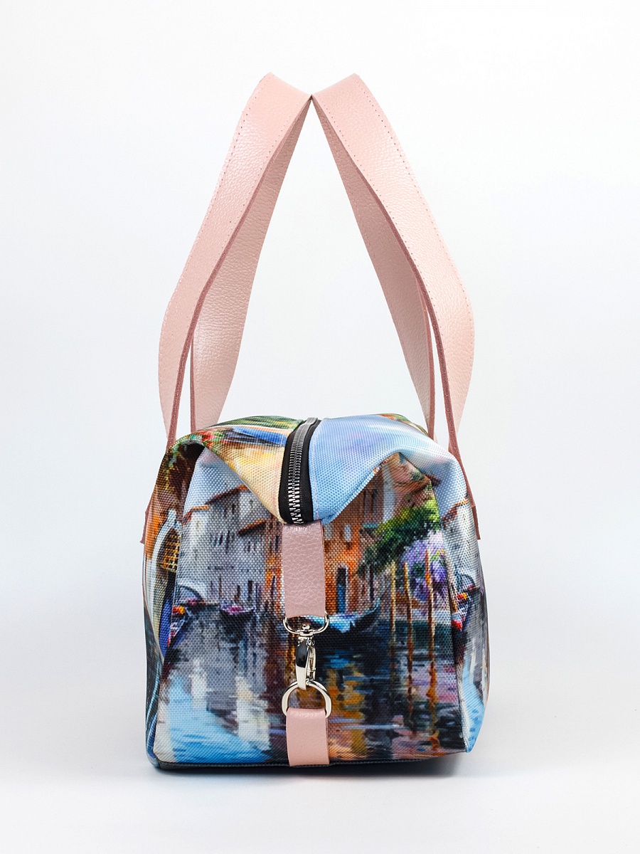 Современная, удобная, сумка выполнена из текстиля, с ручками и отделкой из натуральной кож. Внутри сумки есть два небольших кармана для телефона, один открытый глубокий карман, формата А5 и карман на молнии. Сумка легкая, проста в уходе, очень вместительная. Ткань не линяет. По бокам сумки имеются карабины, отстегнув их сумка становится намного больше. Сумки торговой марки Gallato сделаны из армированного нейлона с водоотталкивающей полиуретановой пропиткой.