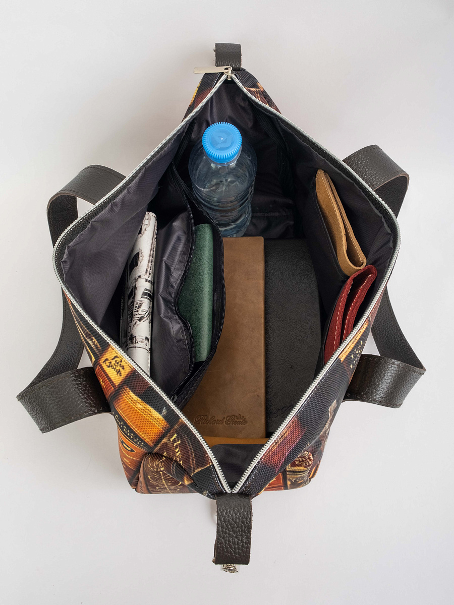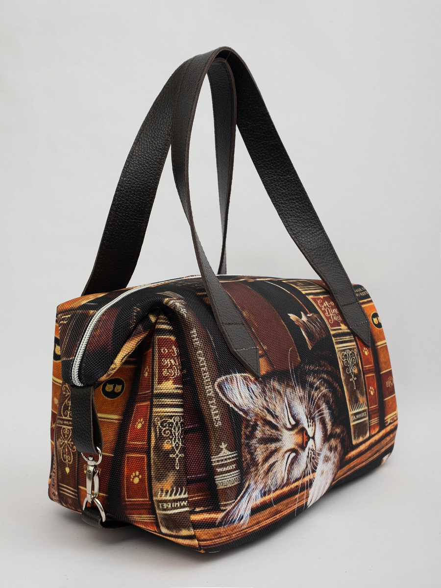 Современная, удобная, сумка выполнена из текстиля, с ручками и отделкой из натуральной кож. Внутри сумки есть два небольших кармана для телефона, один открытый глубокий карман, формата А5 и карман на молнии. Сумка легкая, проста в уходе, очень вместительная. Ткань не линяет. По бокам сумки имеются карабины, отстегнув их сумка становится намного больше. Сумки торговой марки Gallato сделаны из армированного нейлона с водоотталкивающей полиуретановой пропиткой.