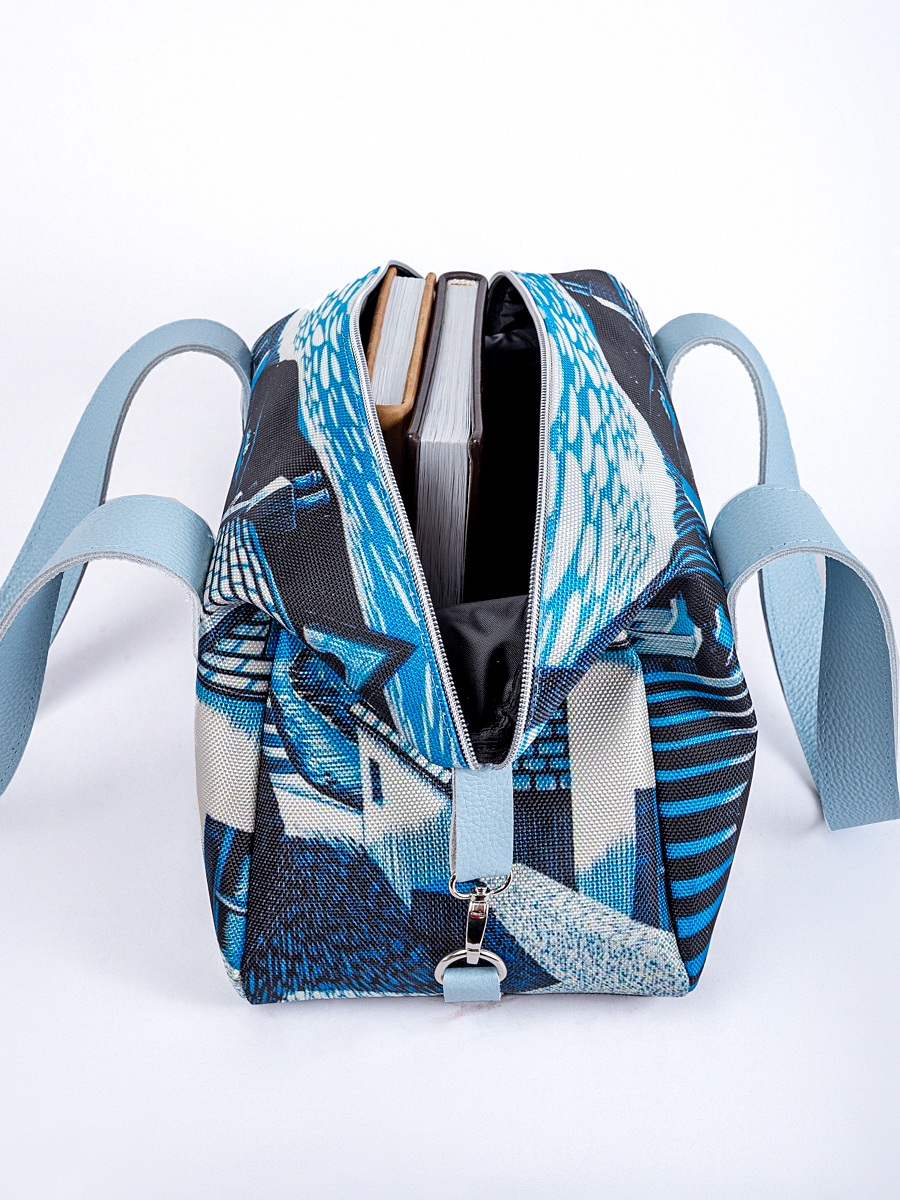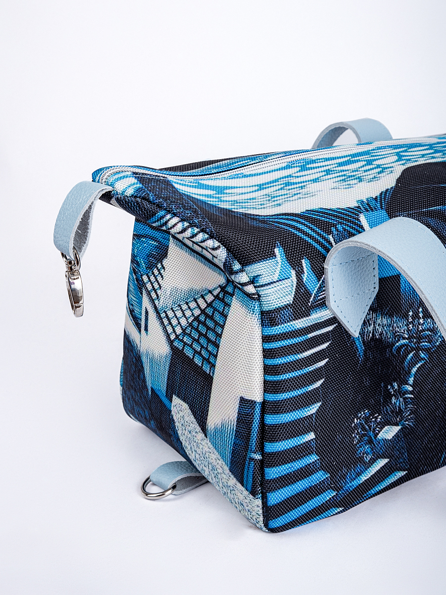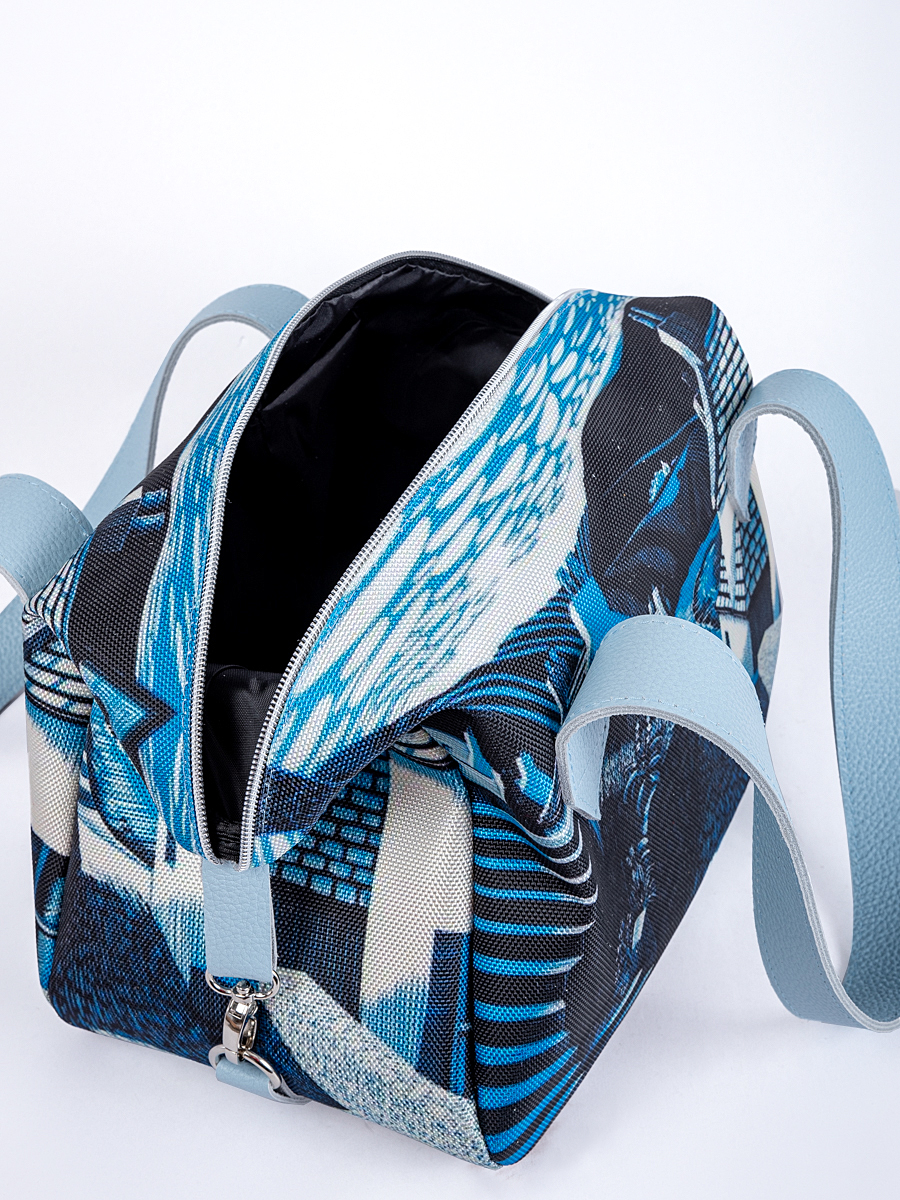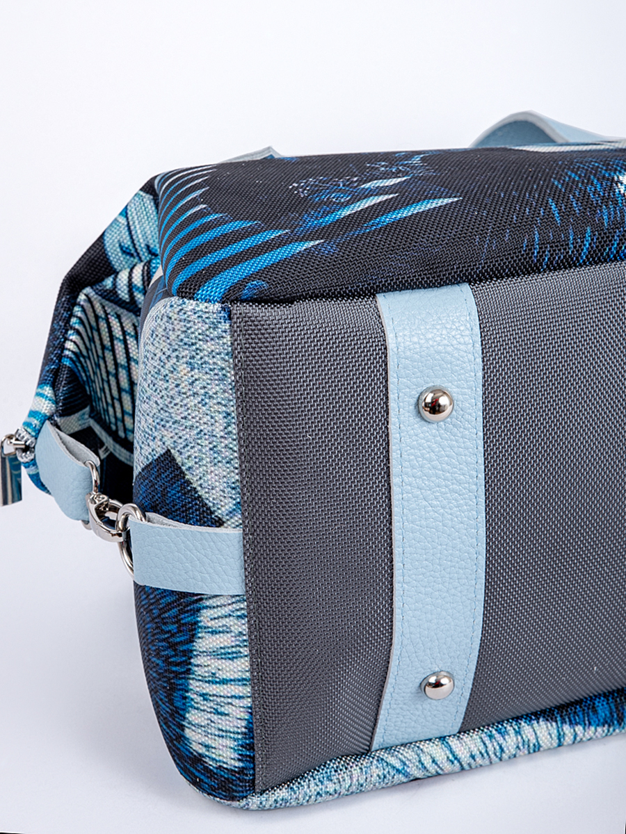Современная, удобная, сумка выполнена из текстиля, с ручками и отделкой из натуральной кож. Внутри сумки есть два небольших кармана для телефона, один открытый глубокий карман, формата А5 и карман на молнии. Сумка легкая, проста в уходе, очень вместительная. Ткань не линяет. По бокам сумки имеются карабины, отстегнув их сумка становится намного больше. Сумки торговой марки Gallato сделаны из армированного нейлона с водоотталкивающей полиуретановой пропиткой.