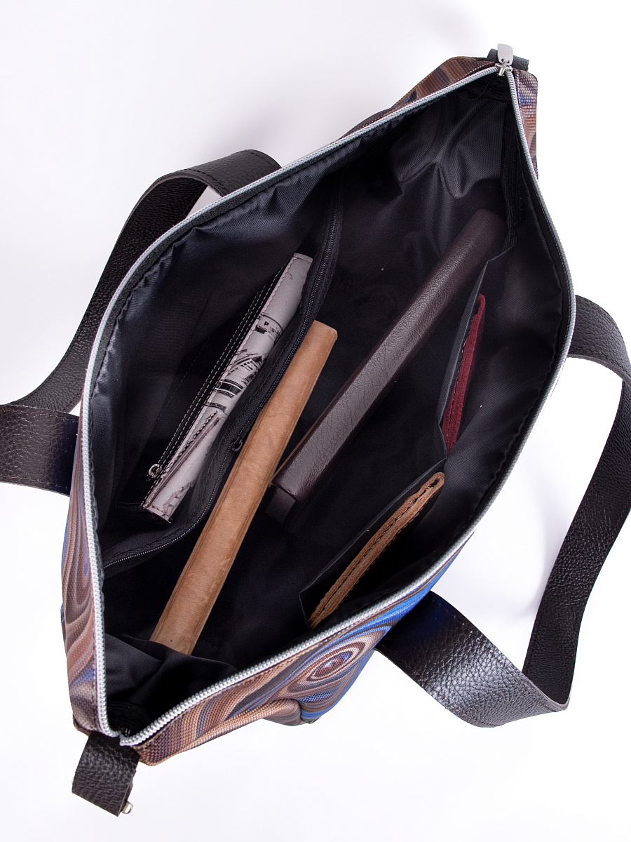 Современная, удобная, сумка выполнена из текстиля, с ручками и отделкой из натуральной кож. Внутри сумки есть два небольших кармана для телефона, один открытый глубокий карман, формата А5 и карман на молнии. Сумка легкая, проста в уходе, очень вместительная. Ткань не линяет. По бокам сумки имеются карабины, отстегнув их сумка становится намного больше. Сумки торговой марки Gallato сделаны из армированного нейлона с водоотталкивающей полиуретановой пропиткой.