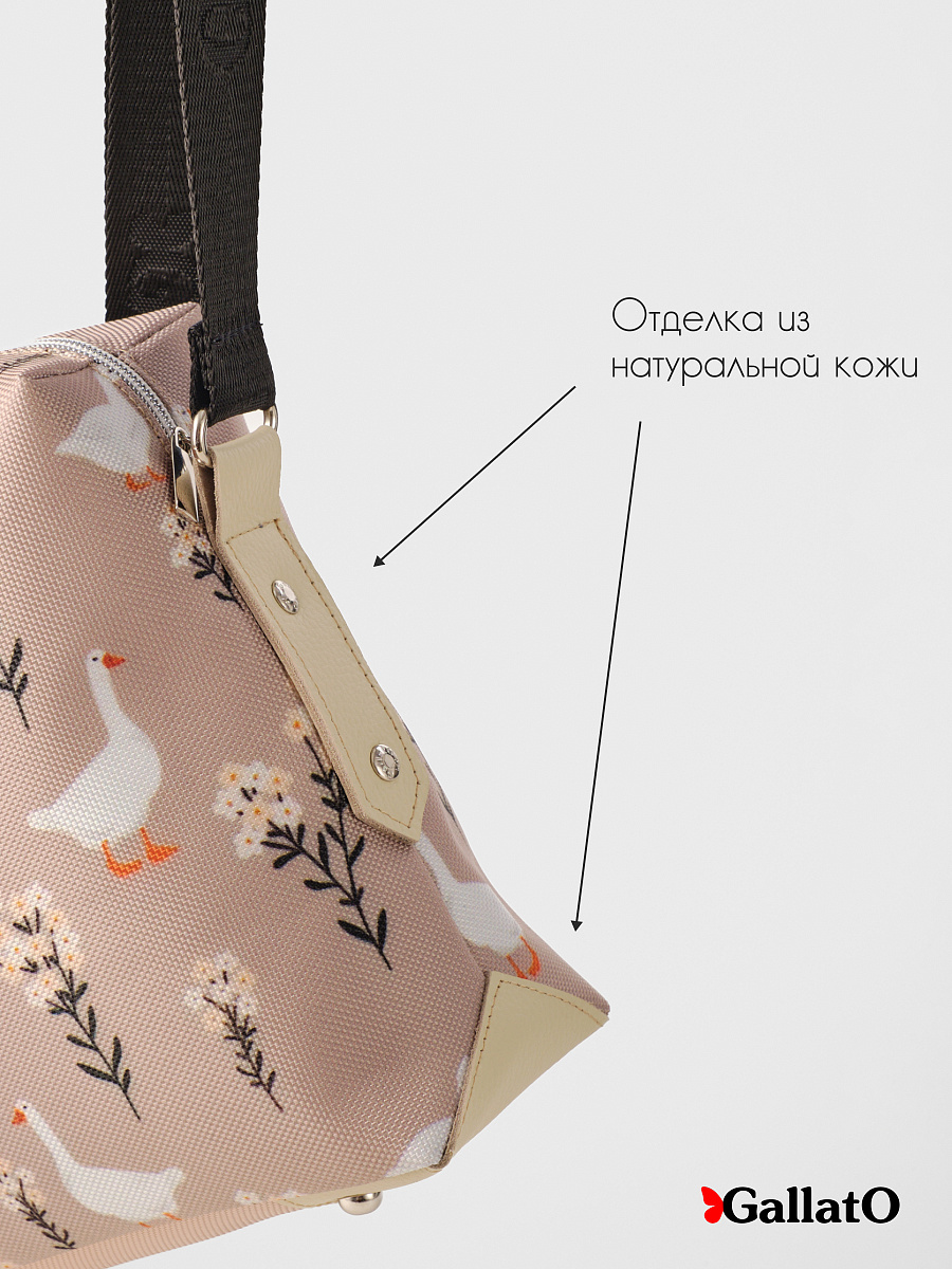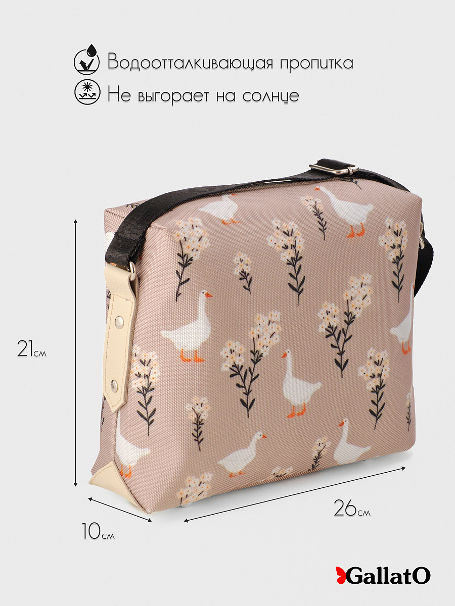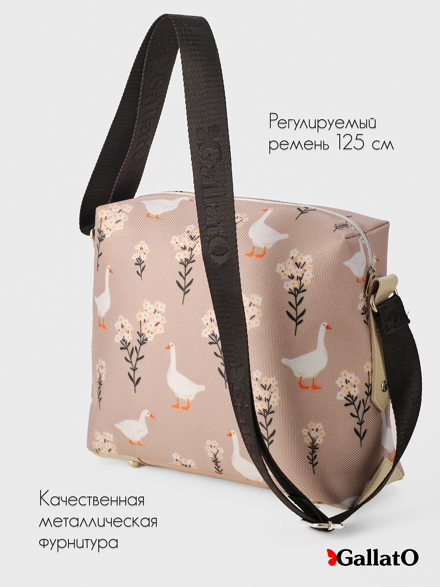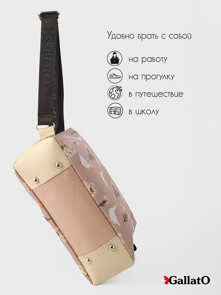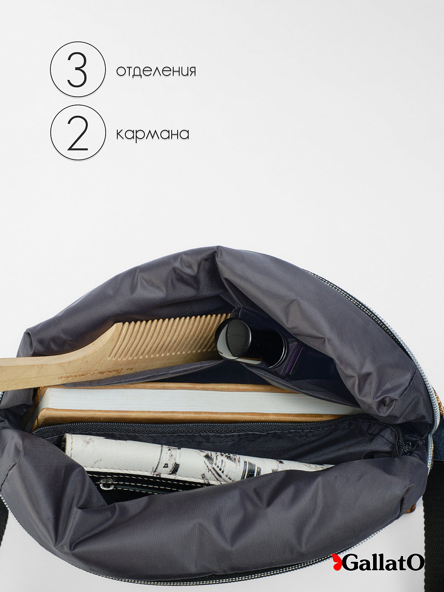 Современная, удобная, сумка выполнена из текстиля с отделкой из натуральной кожи, усилена холнитенами, внутри сумки есть 2 кармана для мелочей, один большой карман закрывающийся на молнию. Легкая, проста в уходе. Сумки торговой марки Gallato сделаны из армированного нейлона с водоотталкивающей полиуретановой пропиткой.